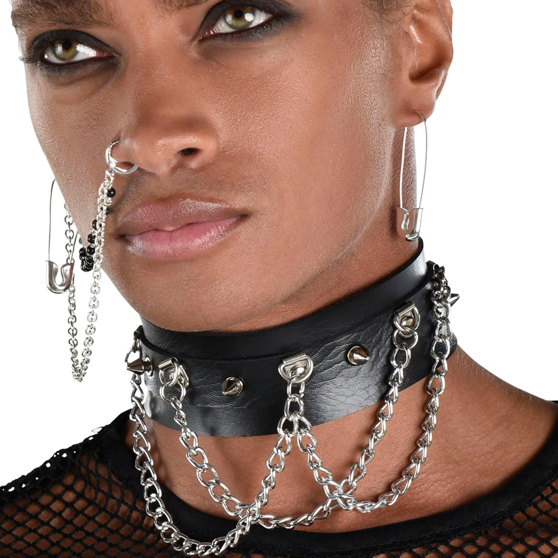 Cheap Adult Spiked Dog Collar Choker With Chains – Punk Jewelry