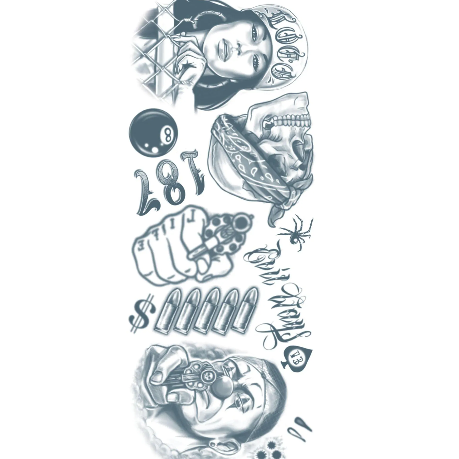 Cheap Black & Gray-Style Thug Temporary Tattoos, 12Pc Makeup