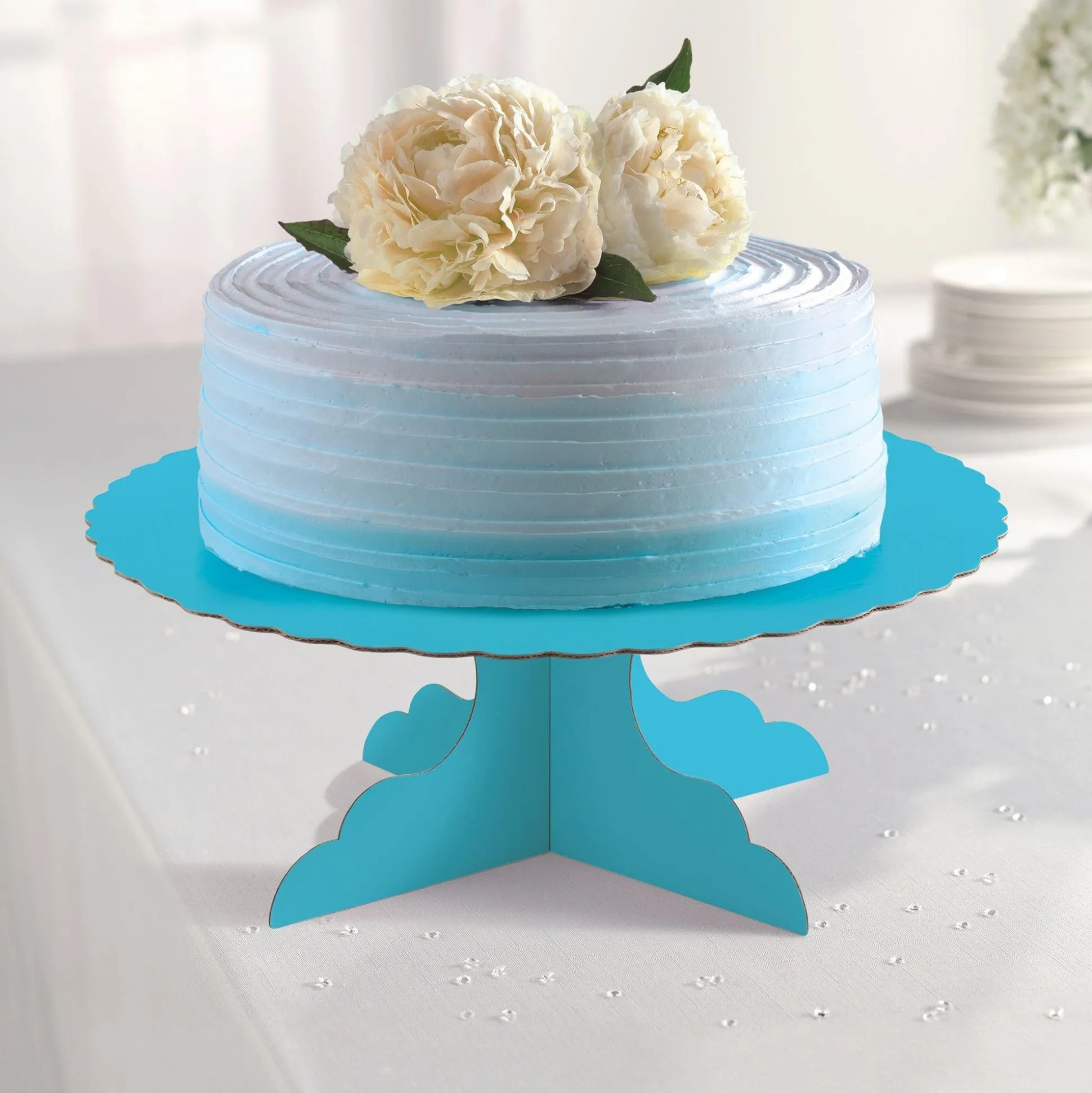 A Caribbean Blue Cake Stand Is A Classic Party Staple That Will Add A Pop Of Colorful Fun To Your Party Decor! This Cake Stand Features A Solid Blue Top And Base. Easily Assemble The Cardboard Pieces Together And Place Up To A 12In Cake On This Sturdy Dessert Stand. The Cake Stand Is Great For Entertaining And Makes A Chic And Contemporary Dessert Display For Your Cake, Cookies, Cupcakes, Or Party Favors.