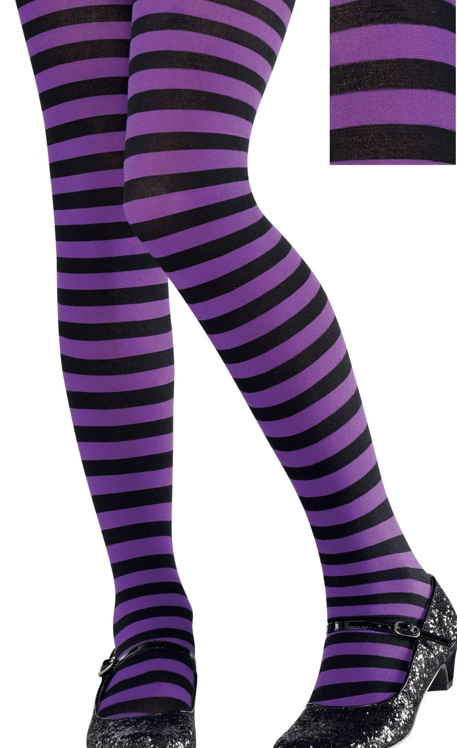 Purple And Black Striped Tights Are A Funky Addition To Casual Outfits And Costumes! With Horizontal Black And Purple Stripes, These Opaque Striped Tights For Kids Put The Fun In Functional! Purple And Black Striped Tights Are Made Of A Poly-Nylon Blend. Small/Medium Fits Children Up To 65Lb. Medium/Large Fits Children Up To 85Lb.