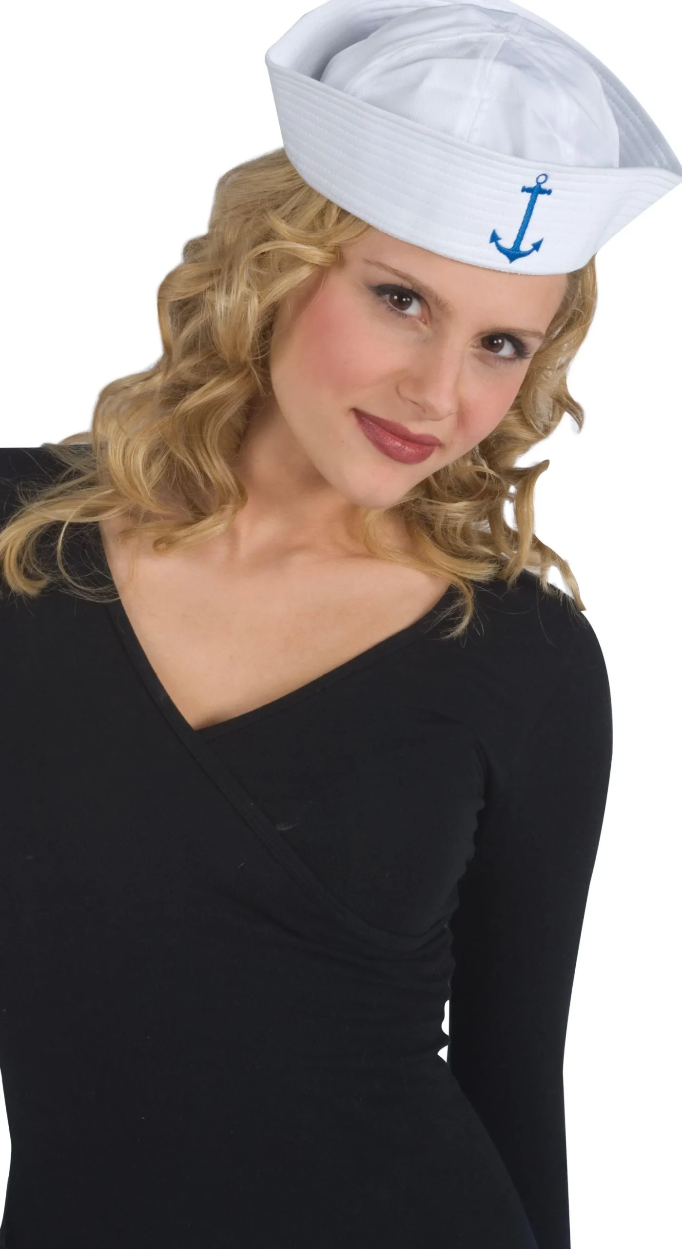 Go From Ship To Shore In A Savvy Sailor Hat! This Fabric Sailor Hat Features A Retro Navy Design And A Dark Blue Embroidered Anchor On The Upturned Brim. Great For Seamen And Sea Sirens Alike, It Can Also Be Used As Fun Photo Booth Prop Or Decoration At A Nautical Party.