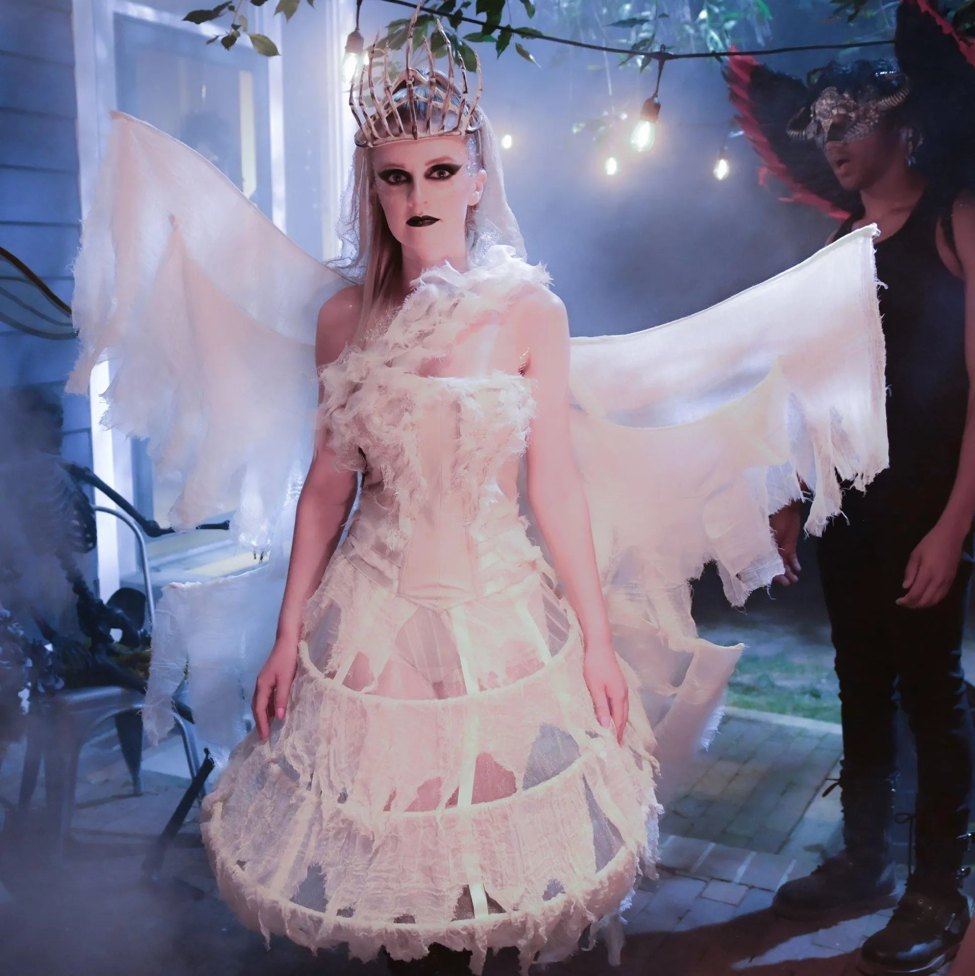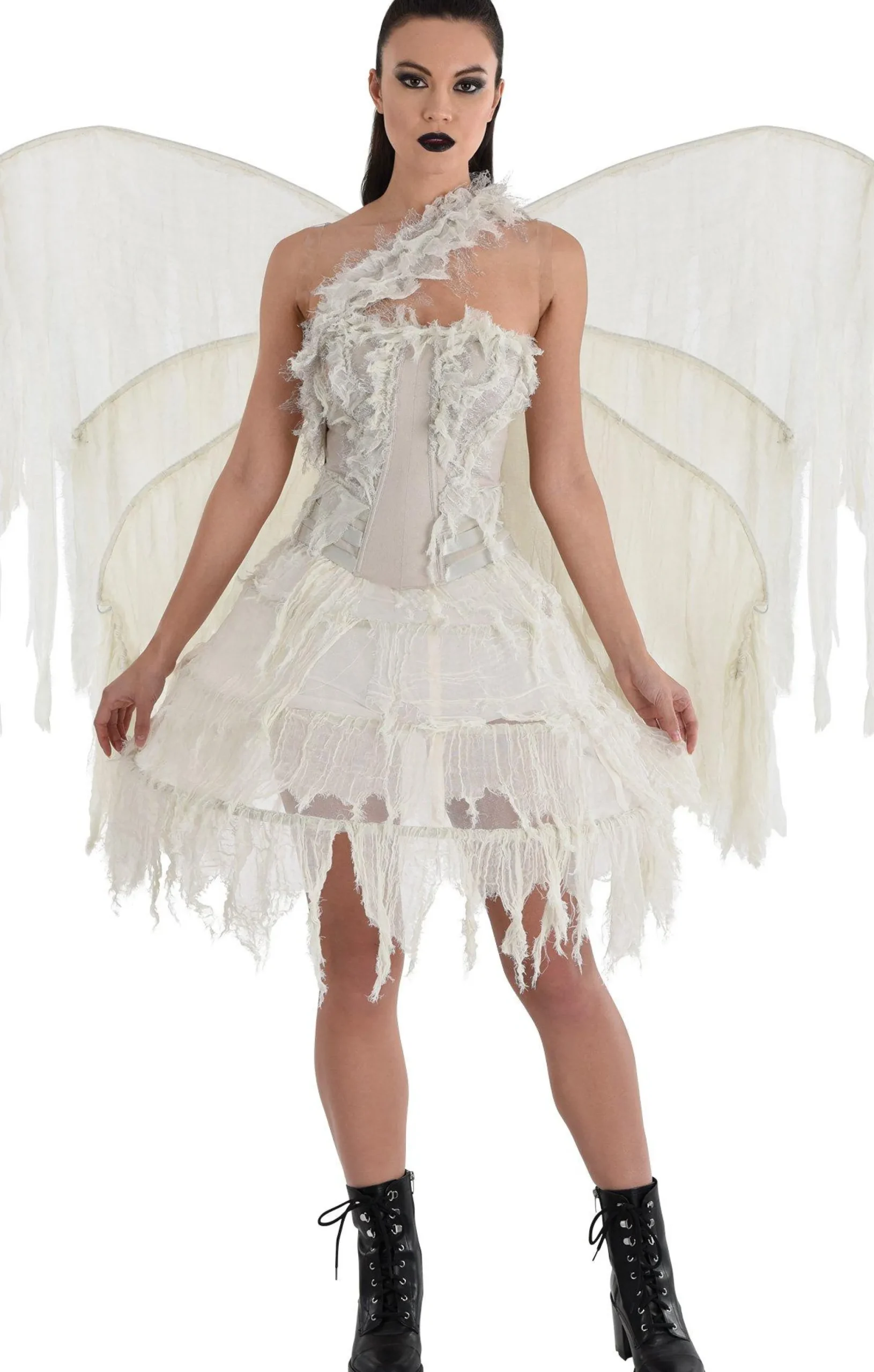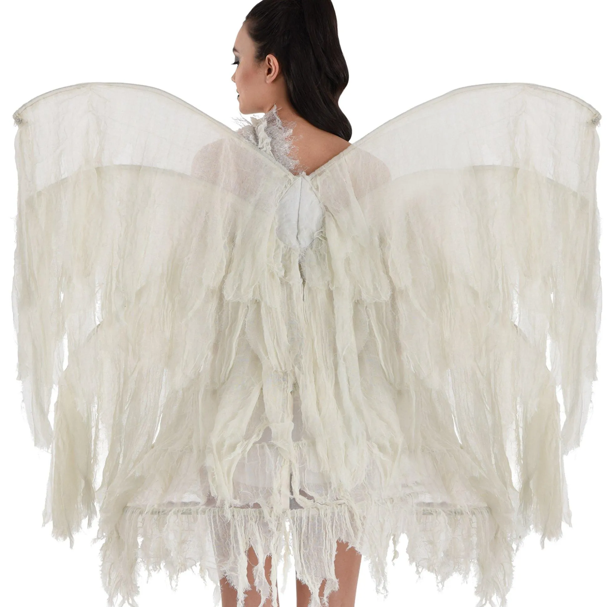 Add A Ghostly Look To Your Halloween Costume With These Fabric Wings. The Distressed Light Beige Wings Look Weathered And Are Adorned With Layered Tattered Gauze. Slip On The Clear Elastic Arm Straps And Fly Off To The Netherworld.