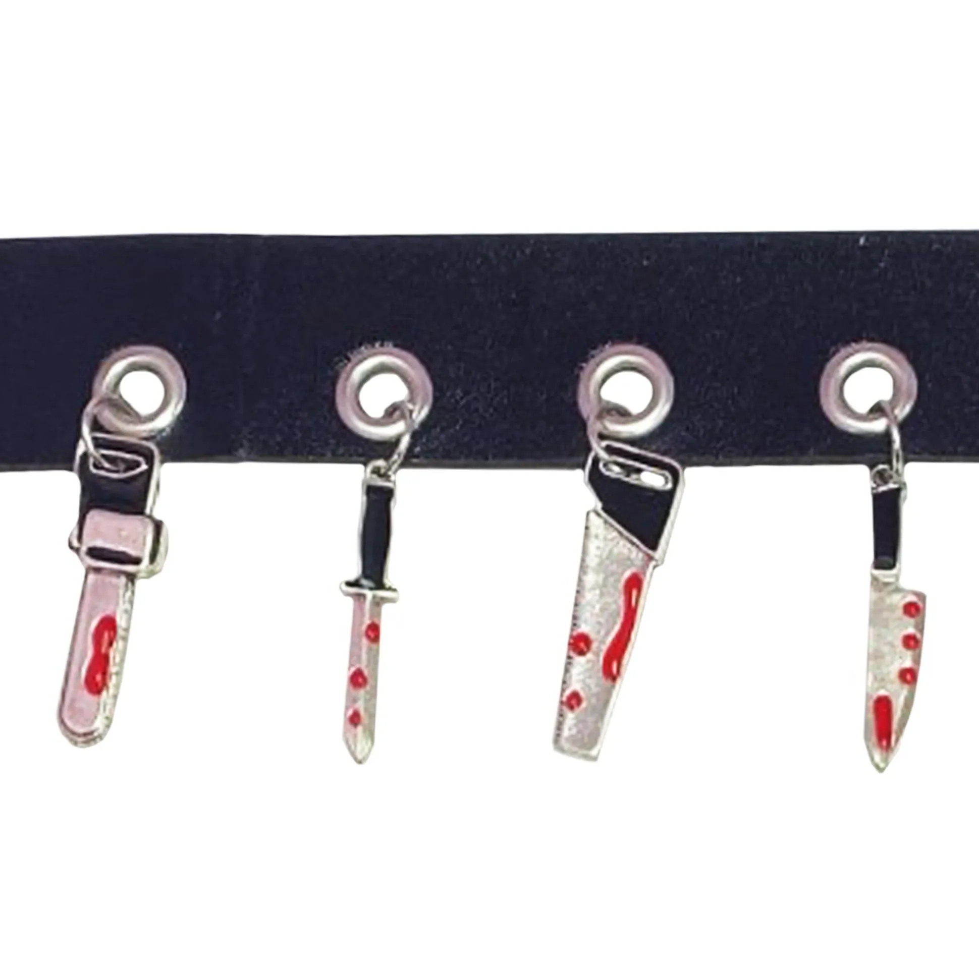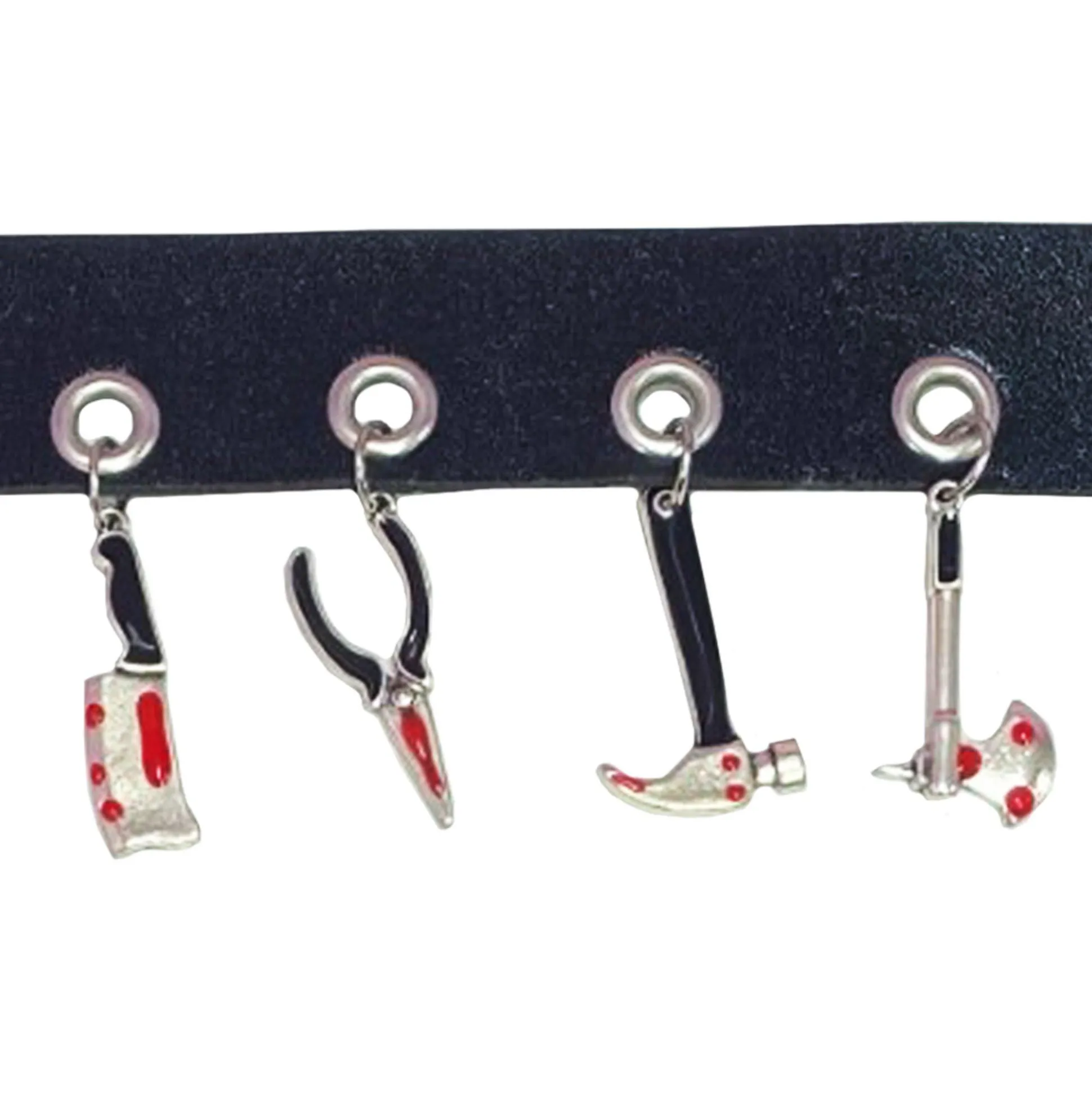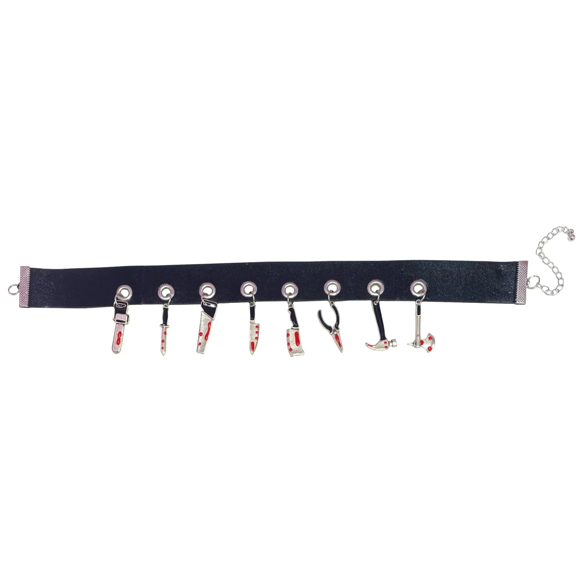 The Weapon Charm Choker Is Your Deadly Cute Accessory This Halloween. It Has A Simple Black Band And Features Eight Silver Weapon Charms With Blood-Splatter Detail. Dangling Playfully From The Band, The Metal Charms Represent An Array Of Classic Killing Implements.