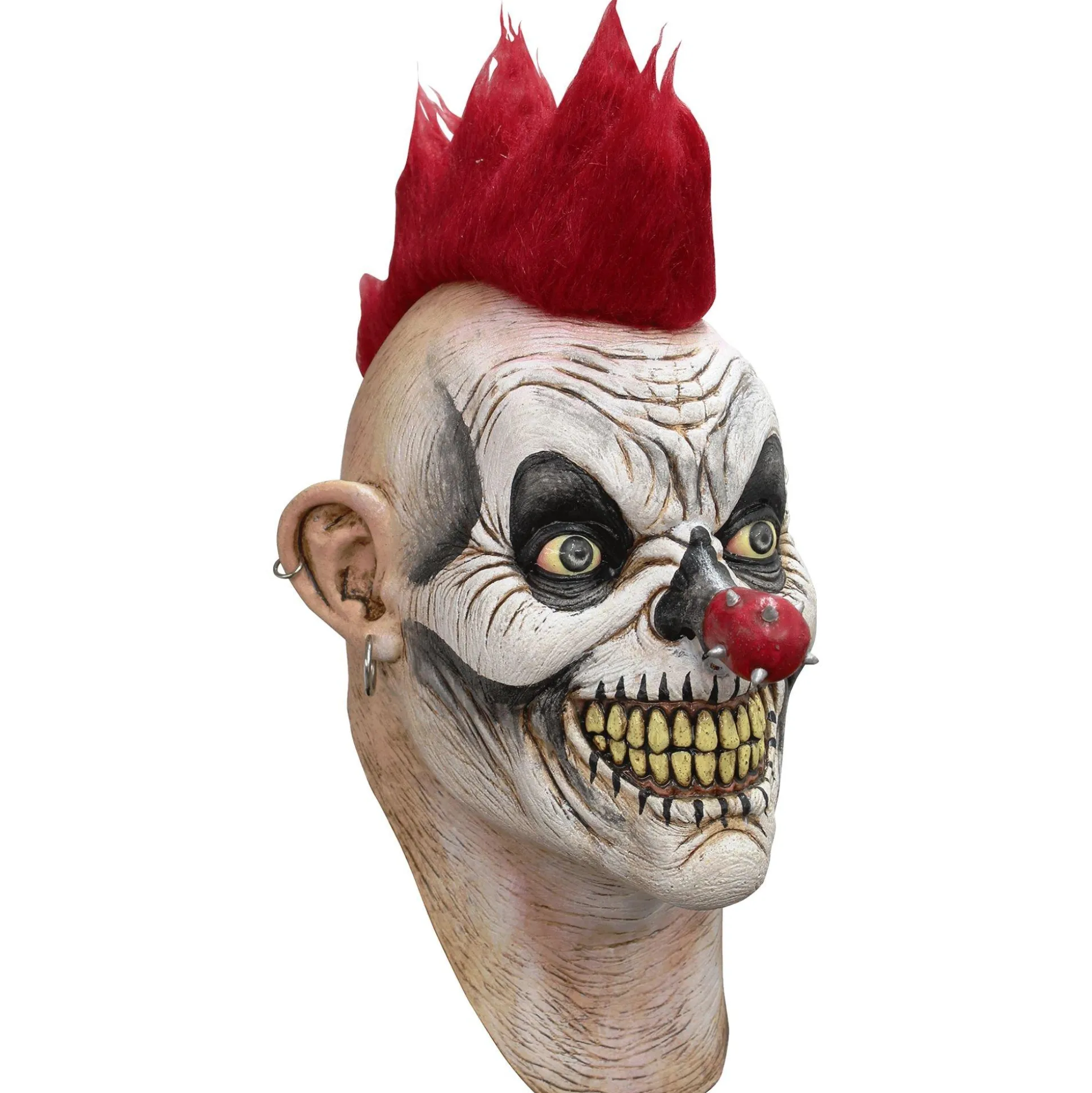Be A Killer Clown With A Punk Rock Attitude In This Natural Rubber Head Mask Featuring Attached Red Mohawk Hair And Real Metal Rings.