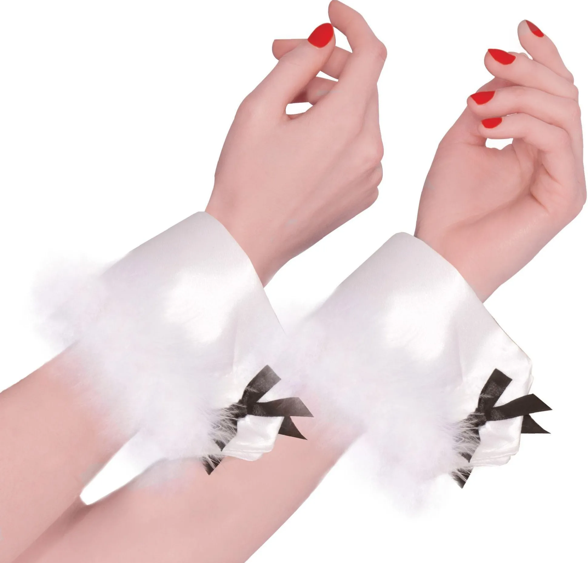 Hop To It! Our White Marabou Bunny Cuffs Are The Perfect Complement To Your Halloween Costume! Bunny Cuffs Feature Satin-Like White Fabric Lined With Fluffy Black Marabou Feathers And Snap Closures For Easy Use. Complete Your Bunny Costume, Kitten Costume And More With These Adorable Feathery Cuffs!
