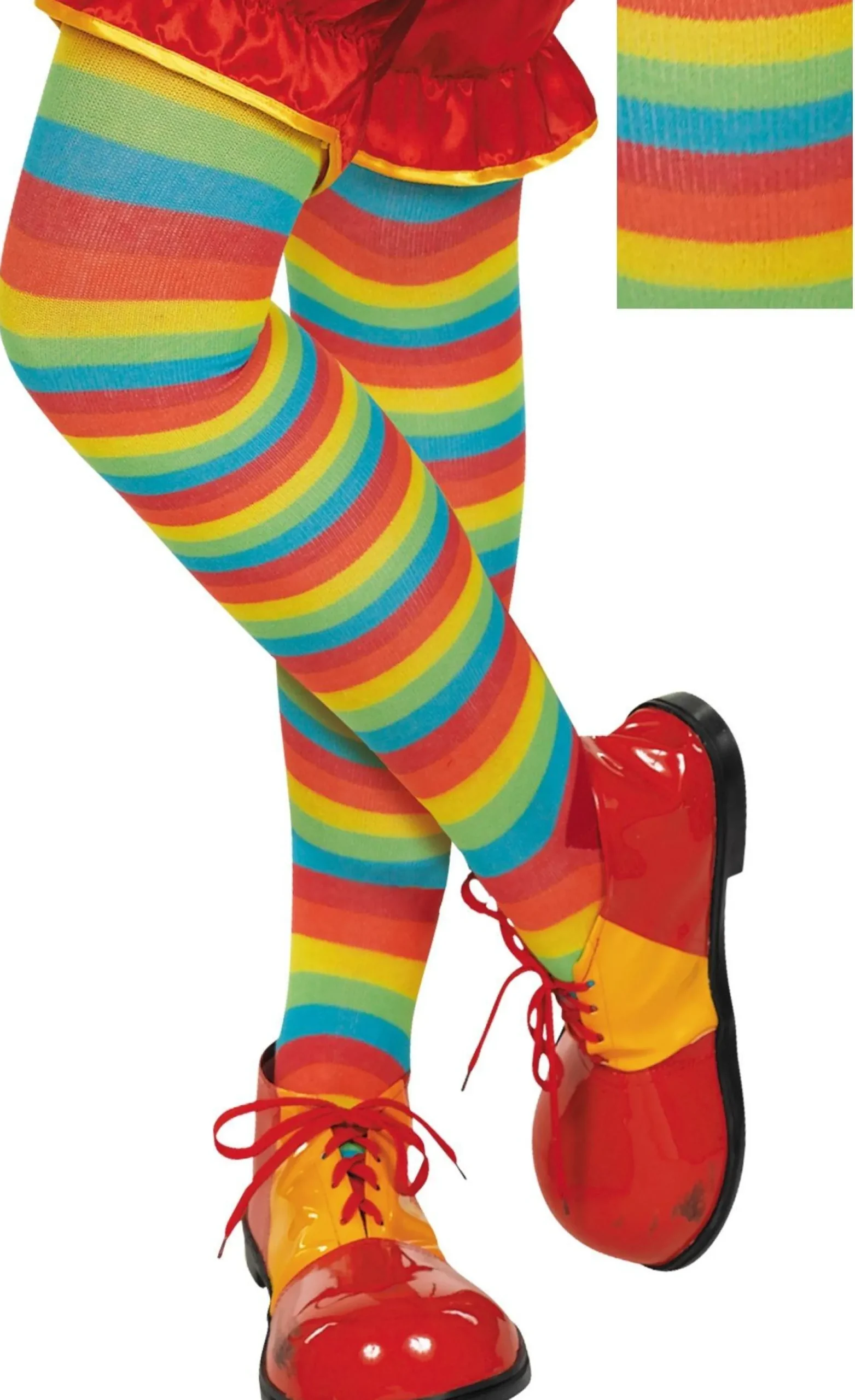 Step Into With Classic Clown Couture! These Rainbow Striped Tights Feature Classic Clown Colors In A Poly-Spandex Comfort Stretch Design. One Size Rainbow Striped Tights Fit Most Standard Dress Sizes (5’2-5’8 And 90-145 Lbs.)