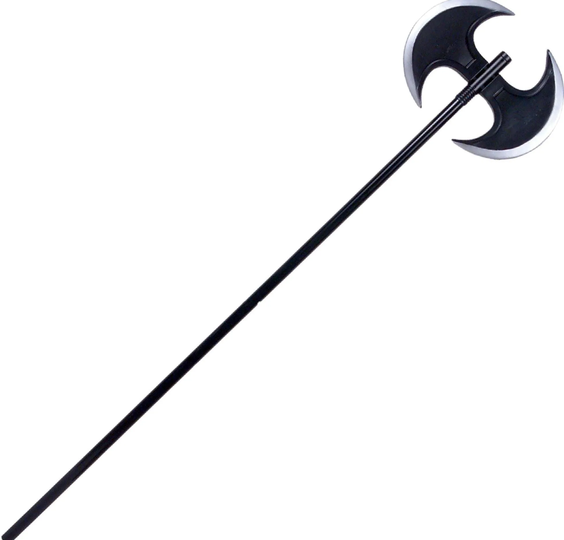 Two Heads Are Better Than One, And Our Double-Bladed Long Executioner Axe Easily Deals With Them Both. This Molded Plastic Executioner Axe Features The Dual Convex Crescent Moon Axe Blades Now Commonly Associated With The Grimmest Job Of The Dark Ages. The Axe Head Is Dulled For Safety And Attaches Easily To The Included Black Handle. Long Executioner Axe Measures 48In In Length When Assembled.