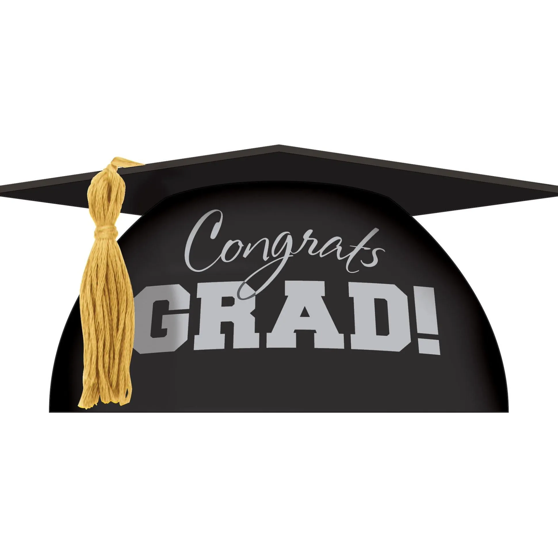 Hats Off To The Grad! A Graduation Cap Cake Topper Is The Perfect Finishing Touch For Your Celebratory Cake. This Graduation Cake Decoration Features An Attached Yellow Tassel And A Congrats Grad Headline That Really Takes The Cake.