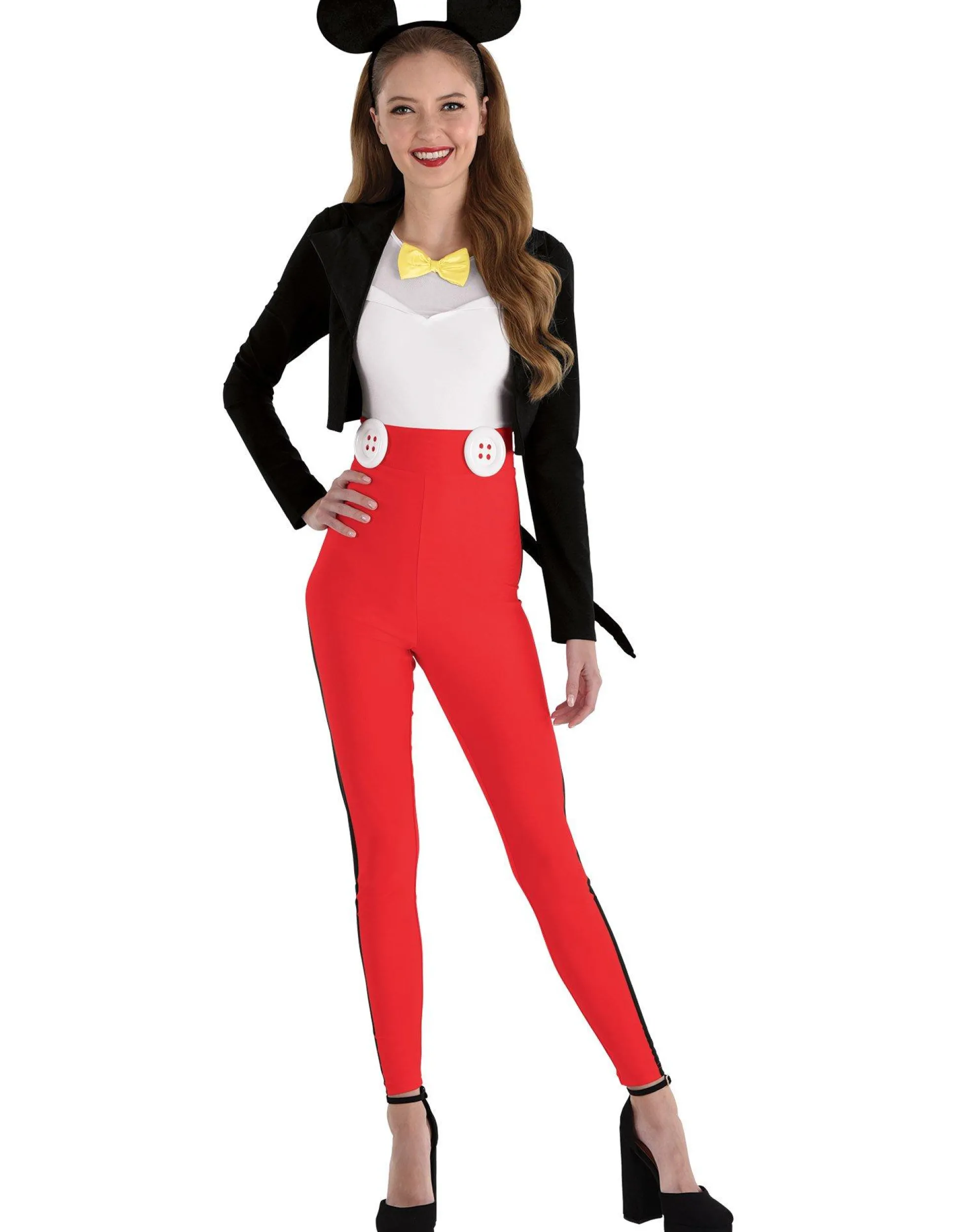 This Mickey Mouse Costume Is A Dapper Take On A Disney Classic. The Catsuit Gives The Appearance Of A Three-Piece Suit With A Cropped Black Blazer, A White Shirt, And A Pair Of Red, High-Waisted Trousers. Finish The Look With The Included Tail And Mickey Ear Headband.
