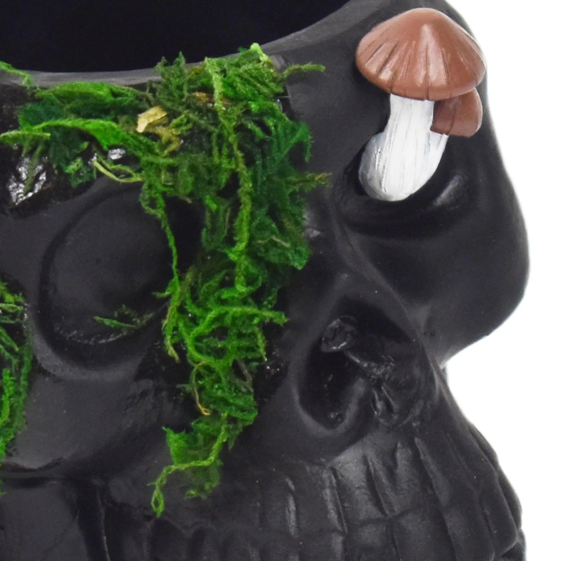 Party City Black Resin & Moss Skull & Mushroom Planter, 7.25In| Home Décor