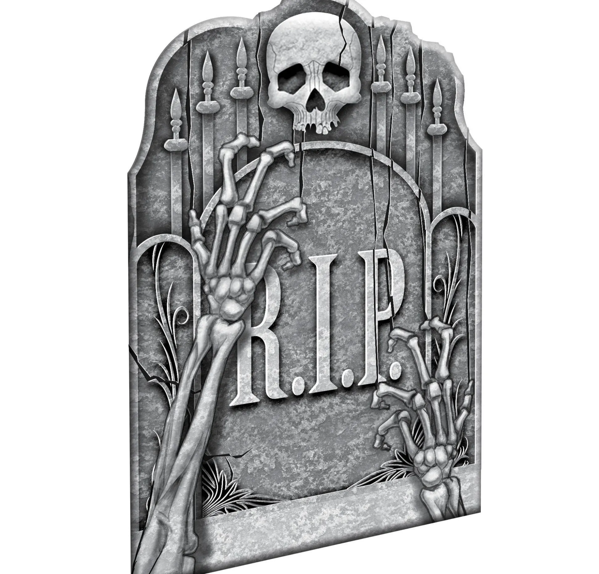 Spook Your Neighbors With The Clawing Hands Tombstone — The Skeleton Wants Out! This Handcrafted Foam Tombstone Is Lightweight With Two Stakes On The Bottom To Make Lawn Decorating A Breeze. A Skull And Rip Sign Are Carved Into The Faux Stone, And Layered On Top Of The Tombstone Design Are Two Skeletal Hands As If Reaching From Beyond The Grave. It’s A Spooky Addition To Any Halloween Graveyard!
