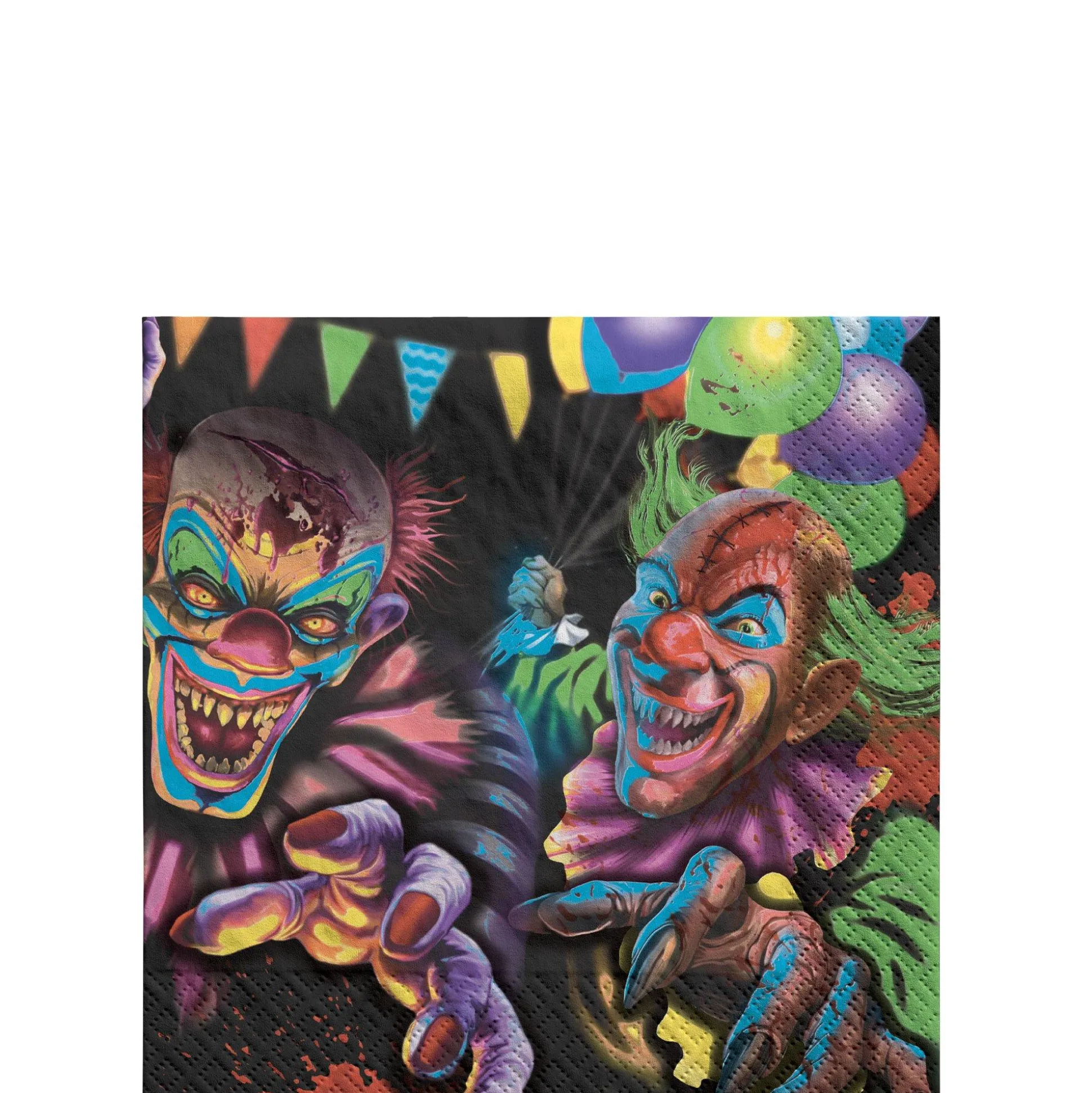 Give Your Halloween Party Table An Eerie Glow With These Fluorescent Beverage Napkins. The Small Two-Ply Paper Napkins Have Creepy Carnival Clowns Reaching Out At You. Best Of All, They Glow When You Add A Black Light To The Room (Sold Separately).