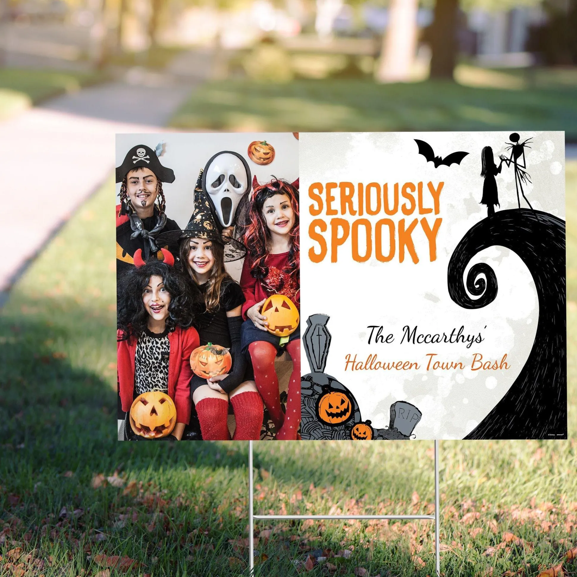 Decorate Your Lawn To Direct Guests To The Halloween Party With A Custom Nightmare Before Christmas Yard Sign! The Outdoor Decoration Features A Seriously Spooky Headline, An Image Of Jack And Sally On Spiral Hill, And Space To Add A Personalized Message. It’S Easy To Customize Your Text With Our Selection Of Font Styles And Colors. The Durable Yard Sign Is Made Of Sturdy Corrugated Plastic And Can Be Placed In Your Lawn Using The Included Metal Stake.