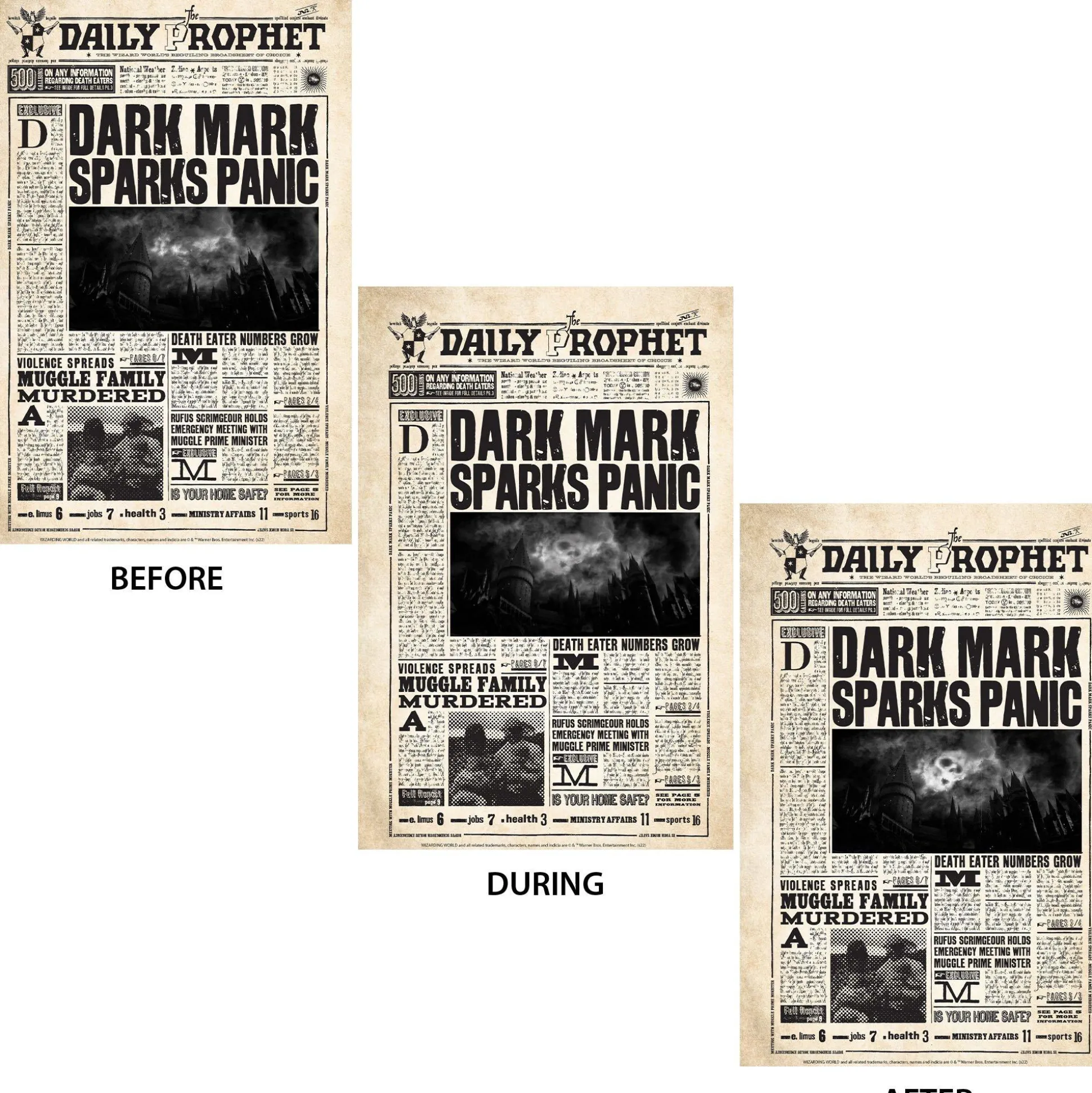 Let Little Wizards And Witches Know To Keep An Eye Out For Death Eaters With This Plastic Harry Potter Decoration. The Poster Looks Like The Front Page Of The