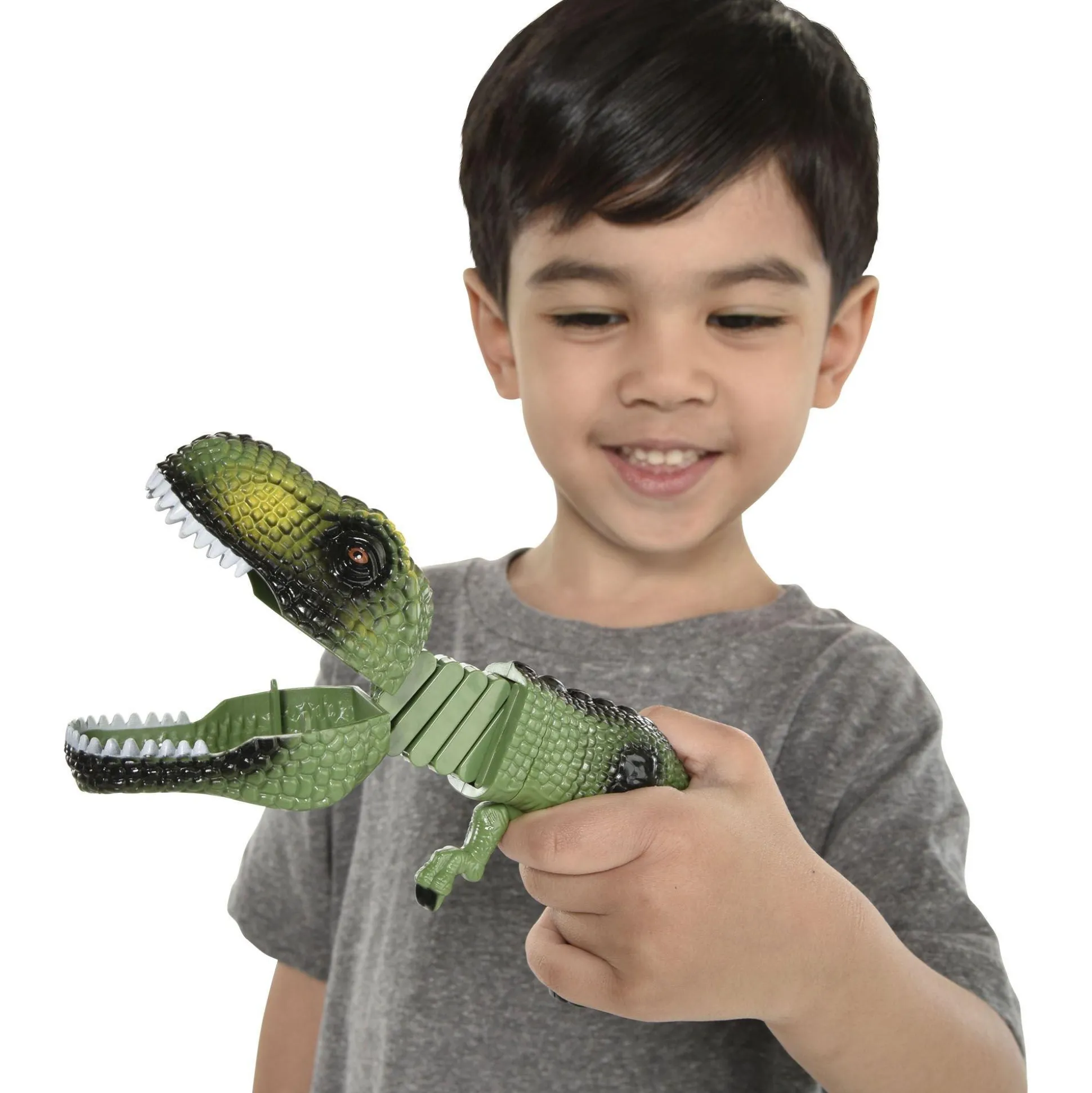 Squeeze The Handle To Watch This Dinosaur Grabber Stretch Its Neck And Close Its Ferocious Jaw. The Plastic T-Rex Comes In Either Green Or Red And The Color You Receive Is A Surprise! It Makes A Great Gift, Stocking Stuffer, Or Even Favor Bag Filler For Dinosaur-Themed Birthday Parties Or Sleepovers.