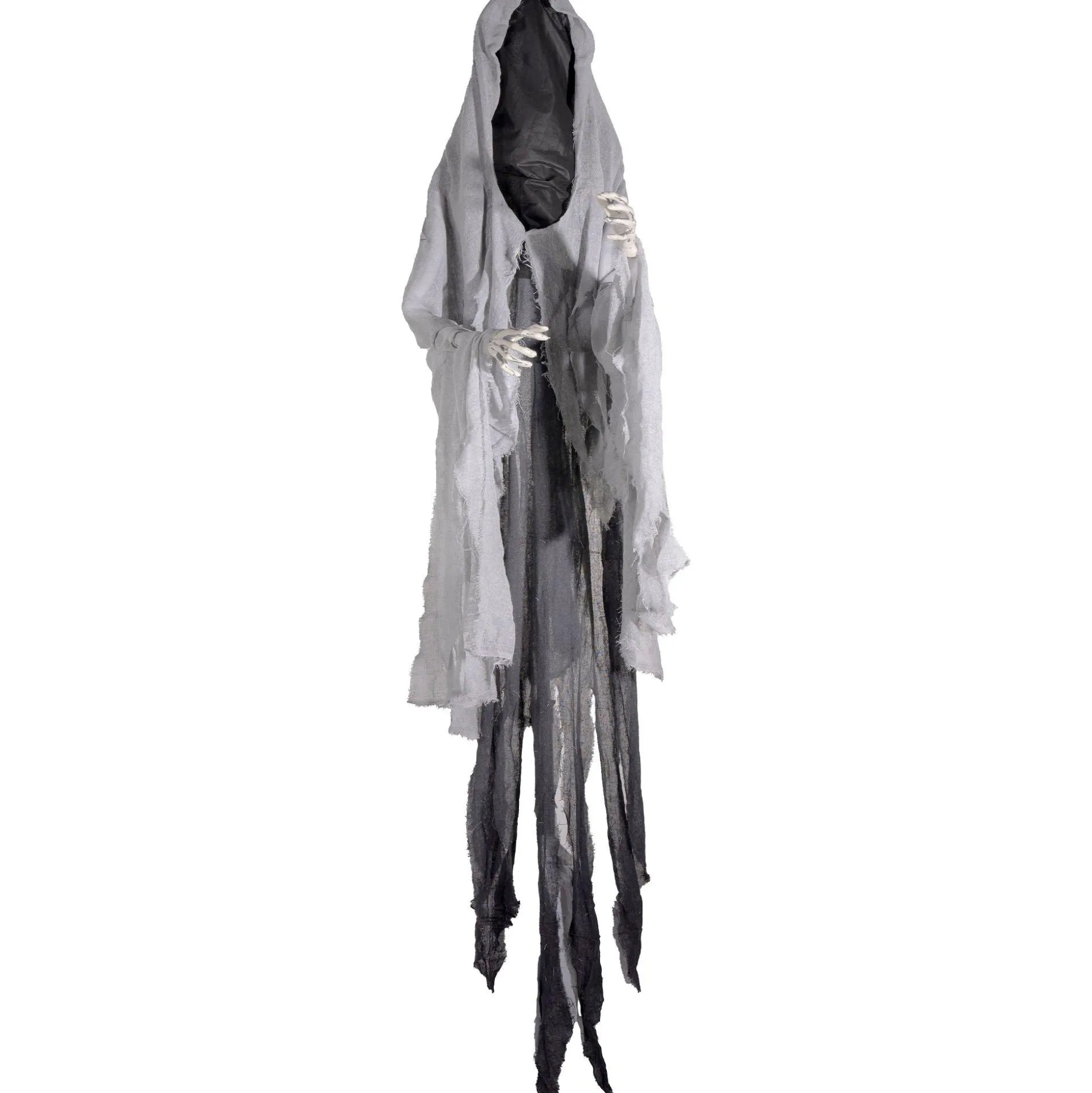 Put The Haunting Into Halloween With The Faceless Ghost. This Hanging Decoration Resembles A Huge Faceless In Gray Tatters And Features Poseable Arms.