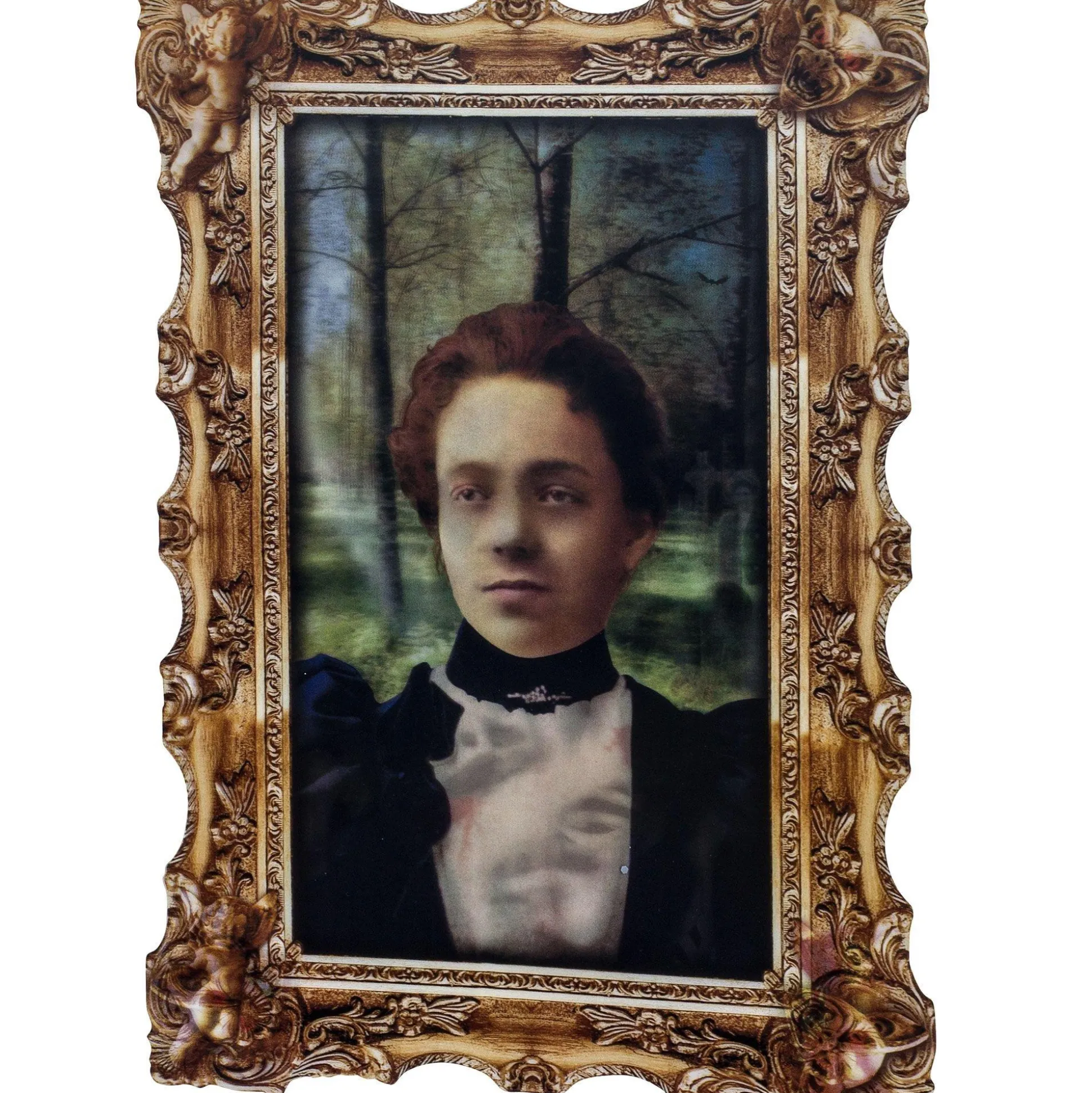 This Creepy Girl Zombie Lenticular Portrait Will Keep A Attentive Eye On Your Visitors As It Fills Them With Fear. The Lenticular Printing Of This Photo Makes A Viewer Think That The Stationary Image Is Moving To Reveal A Scary Zombie Picture. At One Angle, This Flicker Picture Shows A Fresh Young Girl Posing For An Innocent Portrait. An Altered Viewpoint Reveals The Same Girl As A Gruesome Green Zombie With Protruding Bones! The Full Color Lenticular Picture Is Made Of Lightweight, Thin Vinyl And Includes A Printed Scrollwork Frame With Angels Turning To Devils; Sure To Be A Frightening Addition To Your Halloween Decorations. Girl Zombie Lenticular Portrait Measures 12In Wide X 16 1/2In Tall And Is Easily Hung With Double-Sided Tape Or Sticky Tack (Sold Separately).