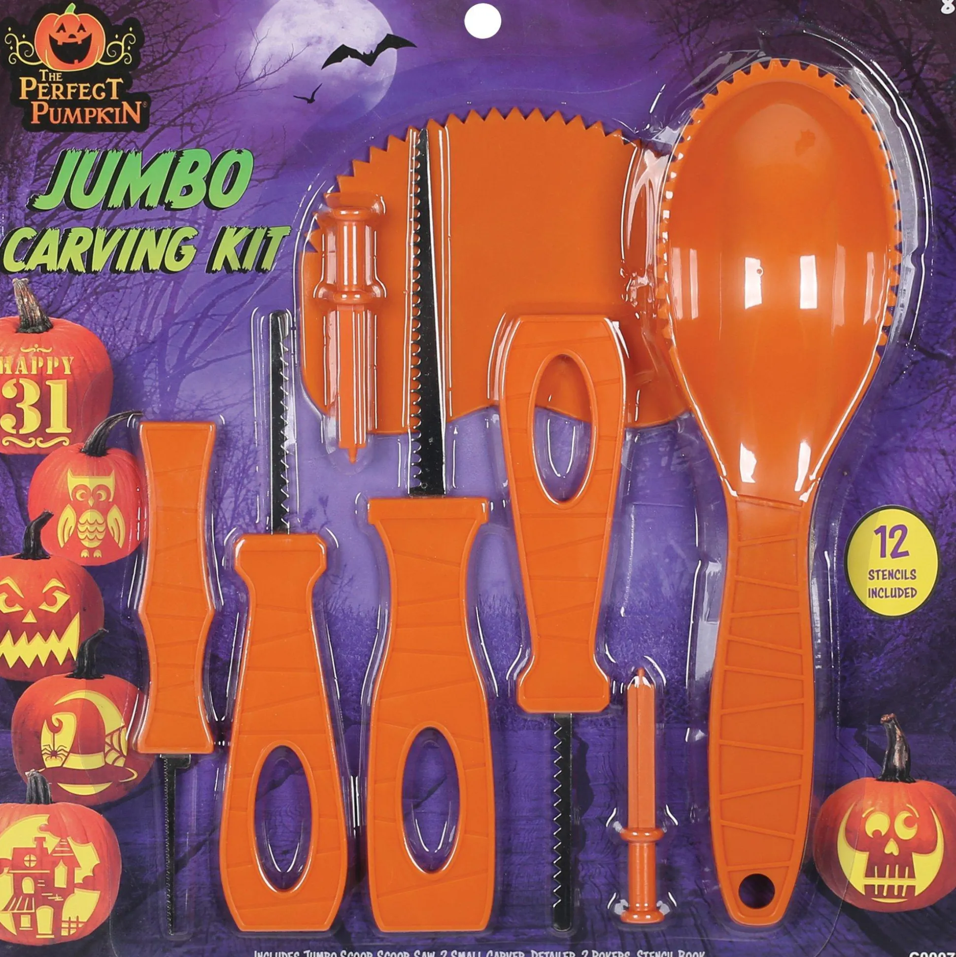 Party City Jumbo Plastic & Stainless Pumpkin Carving Kit With Paper Stencils, 20Pc| Pumpkin Carving Kits