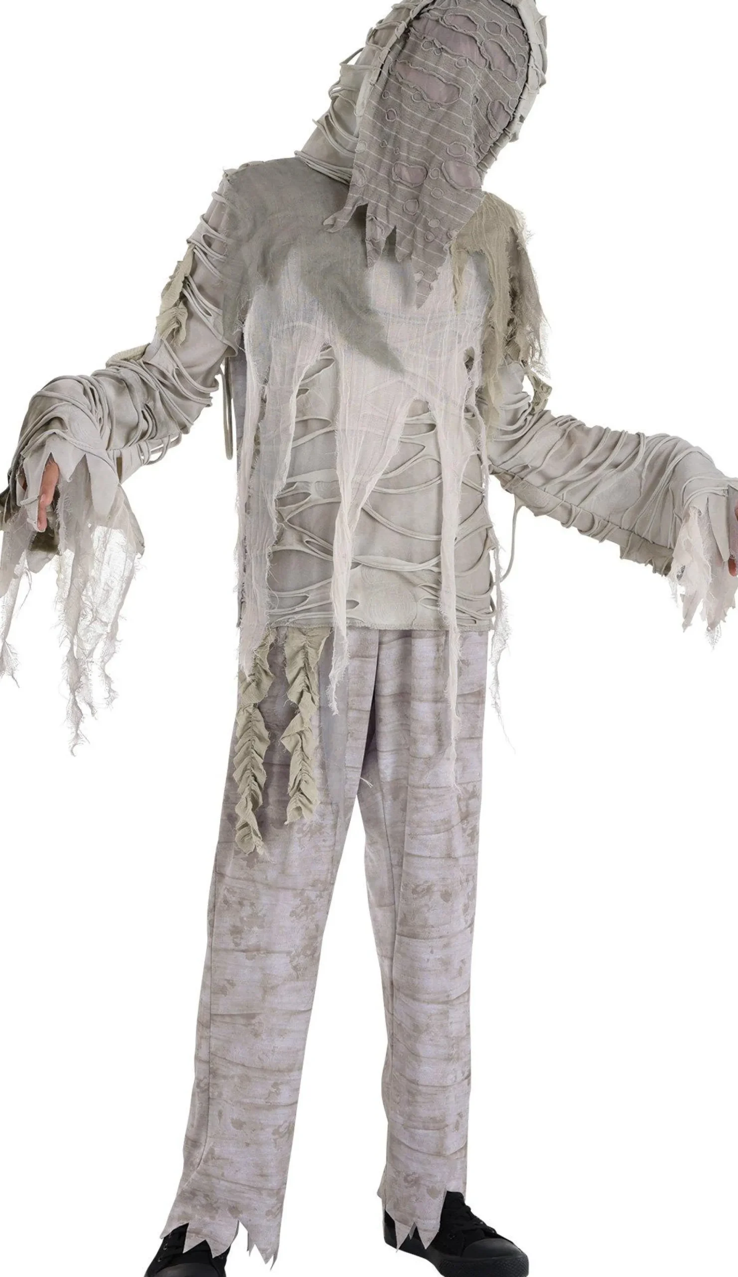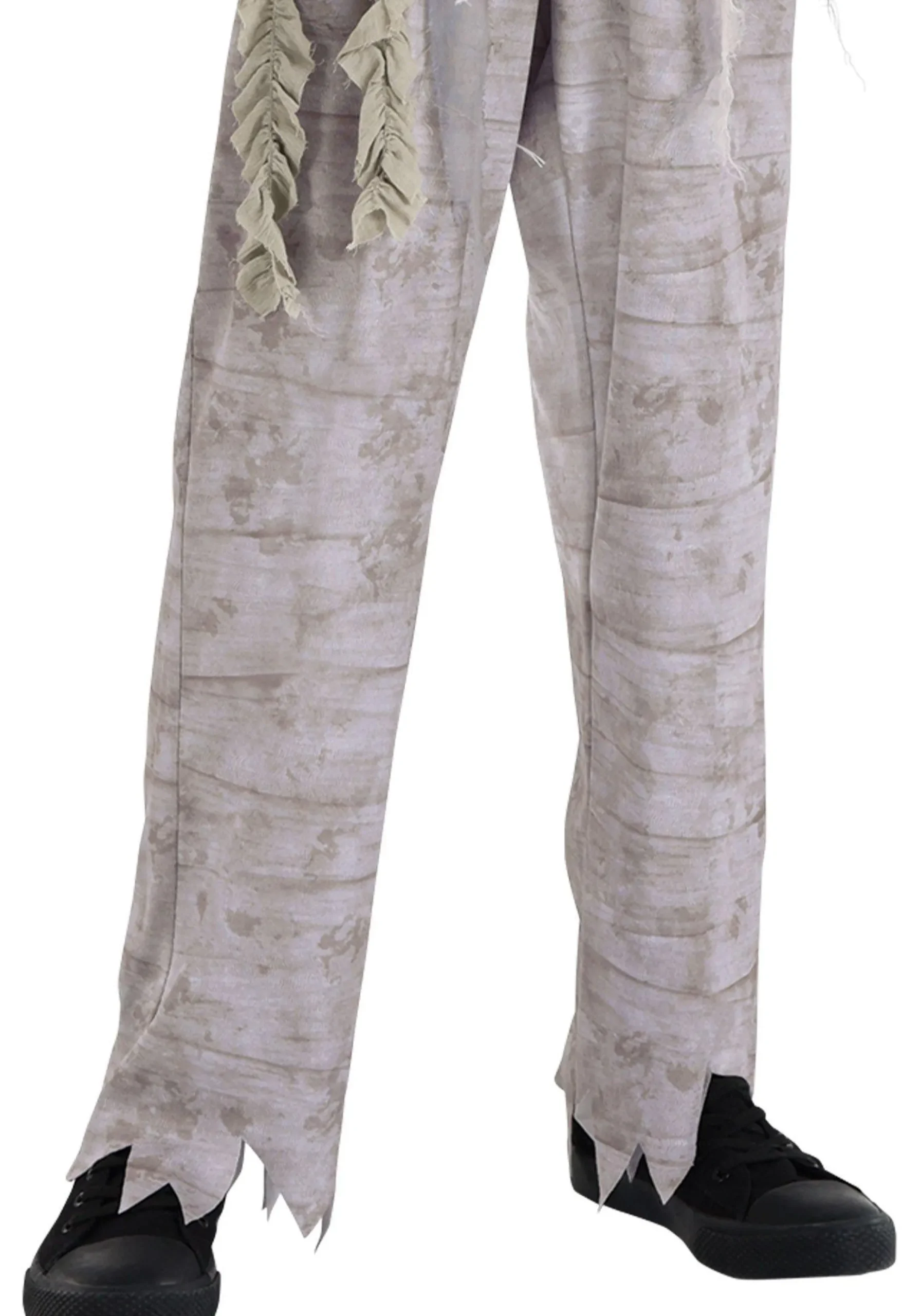 A Mummy, Risen From The Ancient Crypt To Haunt Halloween Night! This Kids’ Mummy Costume Is A Classic Yet Updated Take On The Halloween Favorite. Ranging From Dirty White To Beige, The Costume Includes A Shirt That Features A Hood With A Face Covering, Plus Matching Pants.
