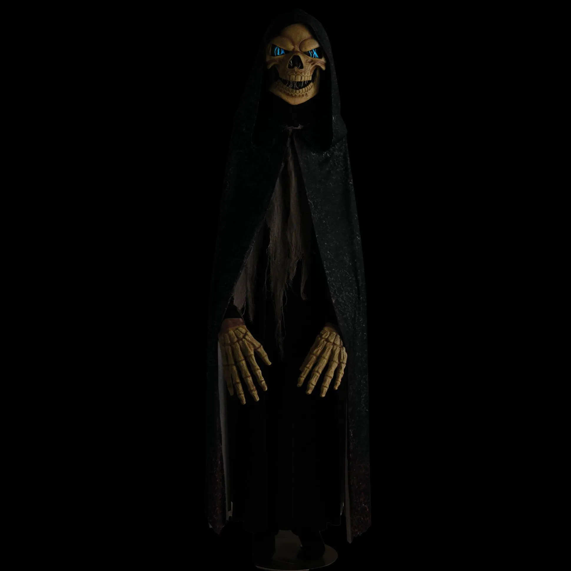 Watch Your Child Grow Before Your Very Eyes Come Halloween In This Terrifying Reaper Costume! This Costume Features A Reaper Skull Structure That Attaches To The Wearer’s Shoulders So That They Appear Nine Inches Taller. The Skull Has Glow-In-The-Dark Eyes And Comes With A Black Robe With Gray Mesh Tatters, A Gray Hooded Cloak, And Skeleton Gloves.