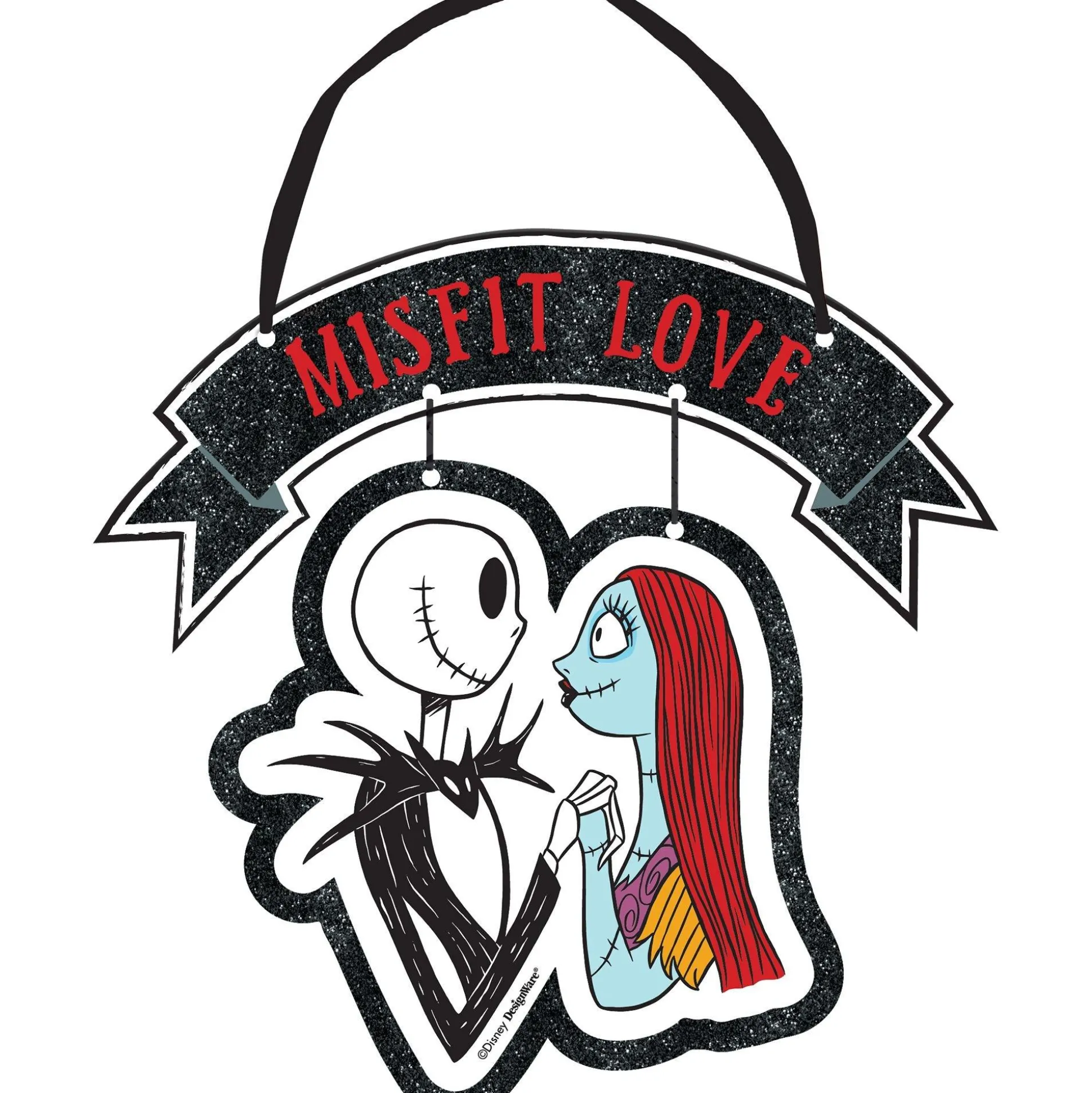 Bring A Little Halloween Town Love To Your Home With This Mini Glitter The Nightmare Before Christmas Sign! The Nightmare Before Christmas Decoration Features A Sign That Reads Misfit Love Above Jack Skellington Looking Into Sally’s Eyes. Black Glitter Trim Finishes Off The Look. With A Ribbon Attached To The Top, This Mini Sign Can Be Easily Hung On A Wall Or Door.