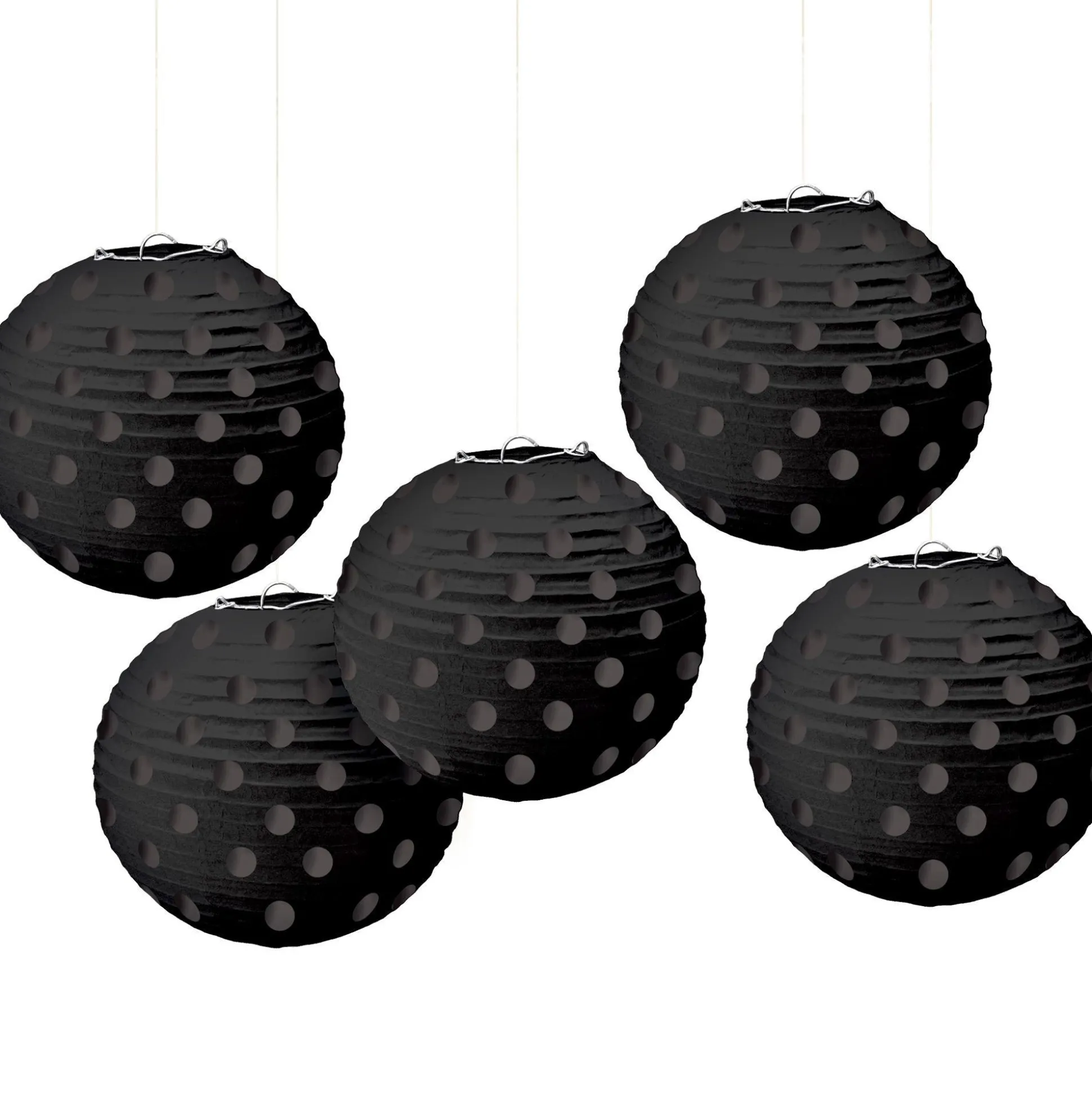 Mini Black Polka Dot Paper Lanterns Will Have Your Guests Seeing Spots! Made Of Paper, These Round Black Lanterns Are Covered In Shiny Black Polka Dots. Easily Expand These Small Black Lanterns With The Included Wire Frames And Hang Them Around Your Party — Their Small Size Makes Them Versatile! Group Them Together Or With Other Paper Lanterns To Match Your Polka Dot Theme Or Black Decorations.