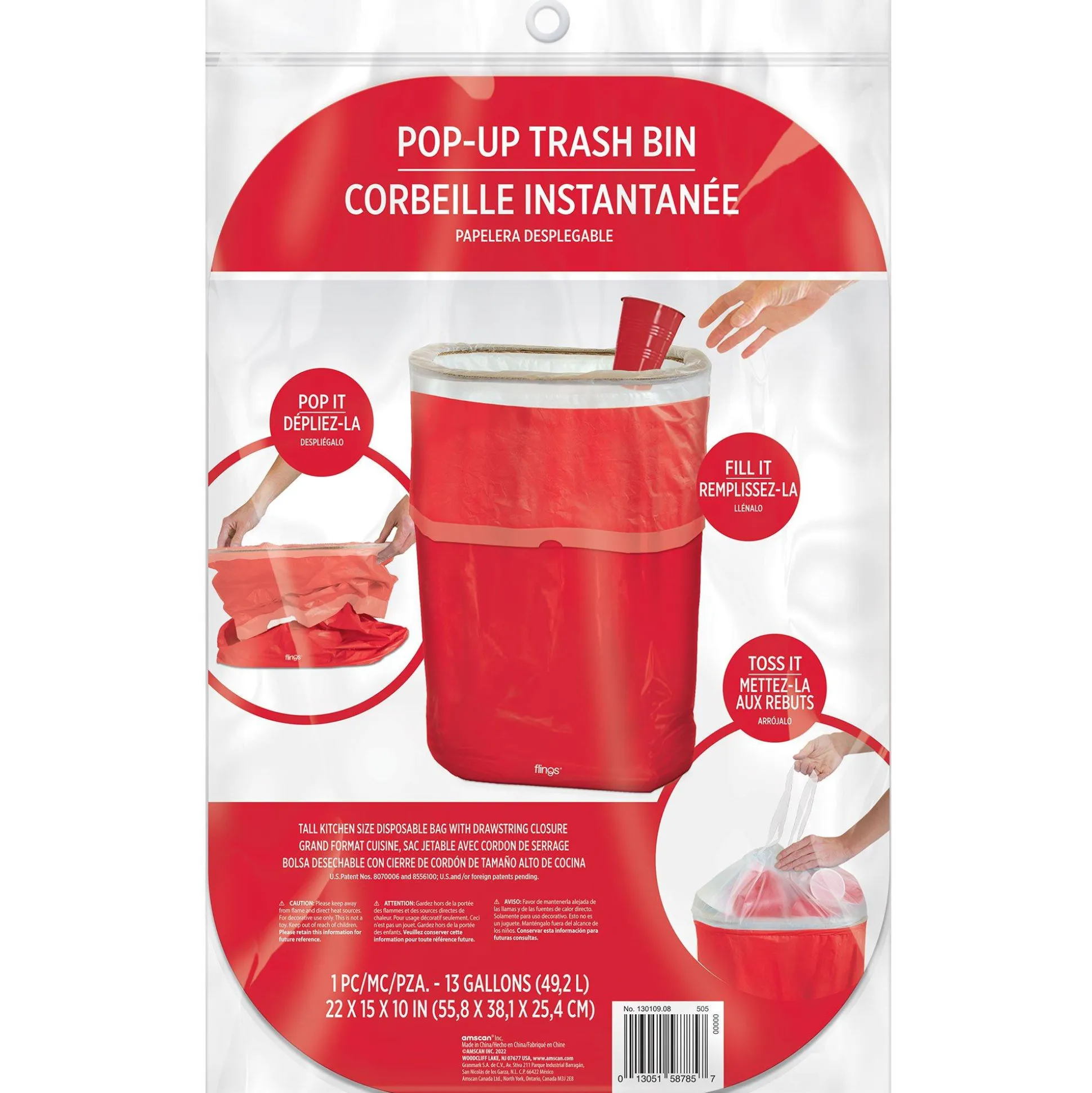 No Need To Hide The Trash When It Matches Your Party Decor! The Red Pop-Up Trash Bin Is A Festive Alternative To A Boring Trash Bag. It’s Conveniently Compact, Perfect For Storing Away Easily Until Party Time. When You’Re Ready To Get The Party Started, The Red Trash Can Snaps Open In Seconds To Hold Up To 13Gal Of Party Debris. This Extra-Tall, Disposable, Leak-Proof Trash Bin Makes Cleanup A Breeze At Your Party.