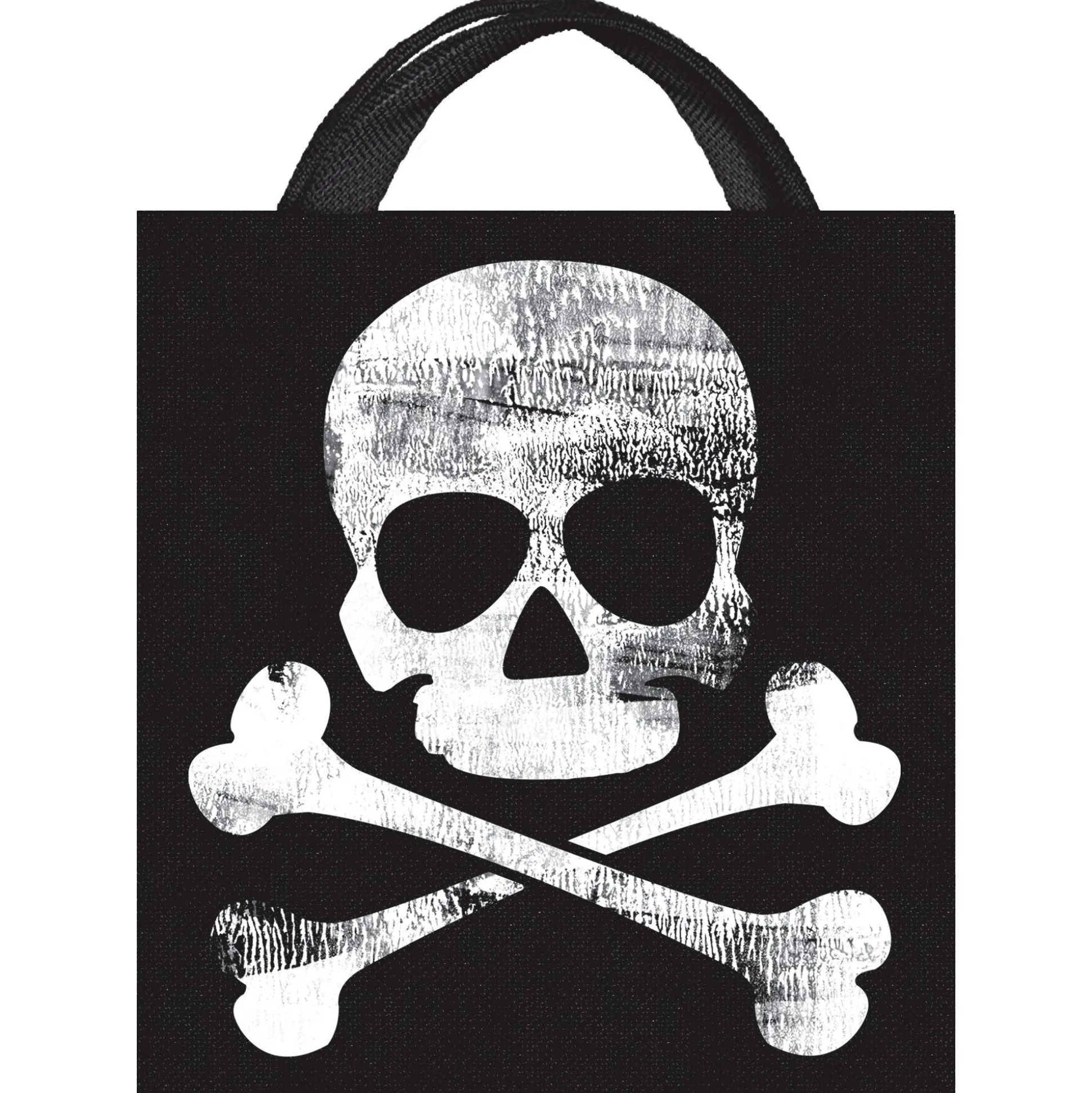 Your Little Pirate Is Ready To Head Out In Search Of Treasures With This Canvas Tote. The Fabric Bag Is Black With A Distressed-Looking Jolly Roger Skull And Crossbones On Each Side, Plus Convenient Shoulder Straps For A Night Of Trick-Or-Treating.