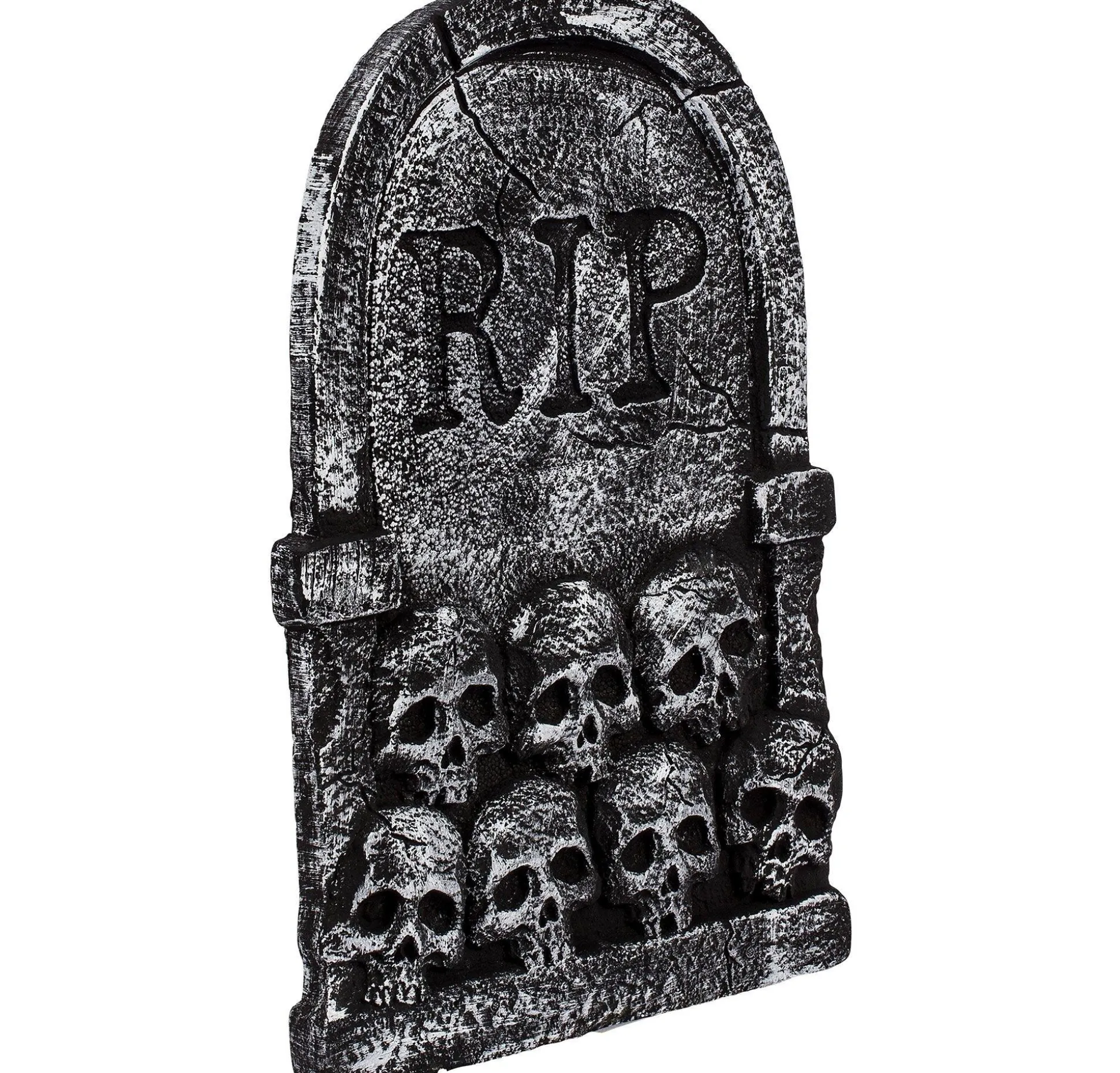 Transform Your Garden Into A Cemetery With This Eerie Skulls Tombstone Decoration! This Black And Gray Skulls Tombstone Decoration Features A Realistic Granite-Look With Detailed Carved Skulls At The Bottom, A Rip Header Across The Top In Gothic Lettering And Realistic Cracked And Weathered Details. Metal Stakes Are Included With The Skulls Tombstone Decoration For Quick And Easy Outdoor Grounding. This Spooky Foam Halloween Prop Measures 22In Tall.