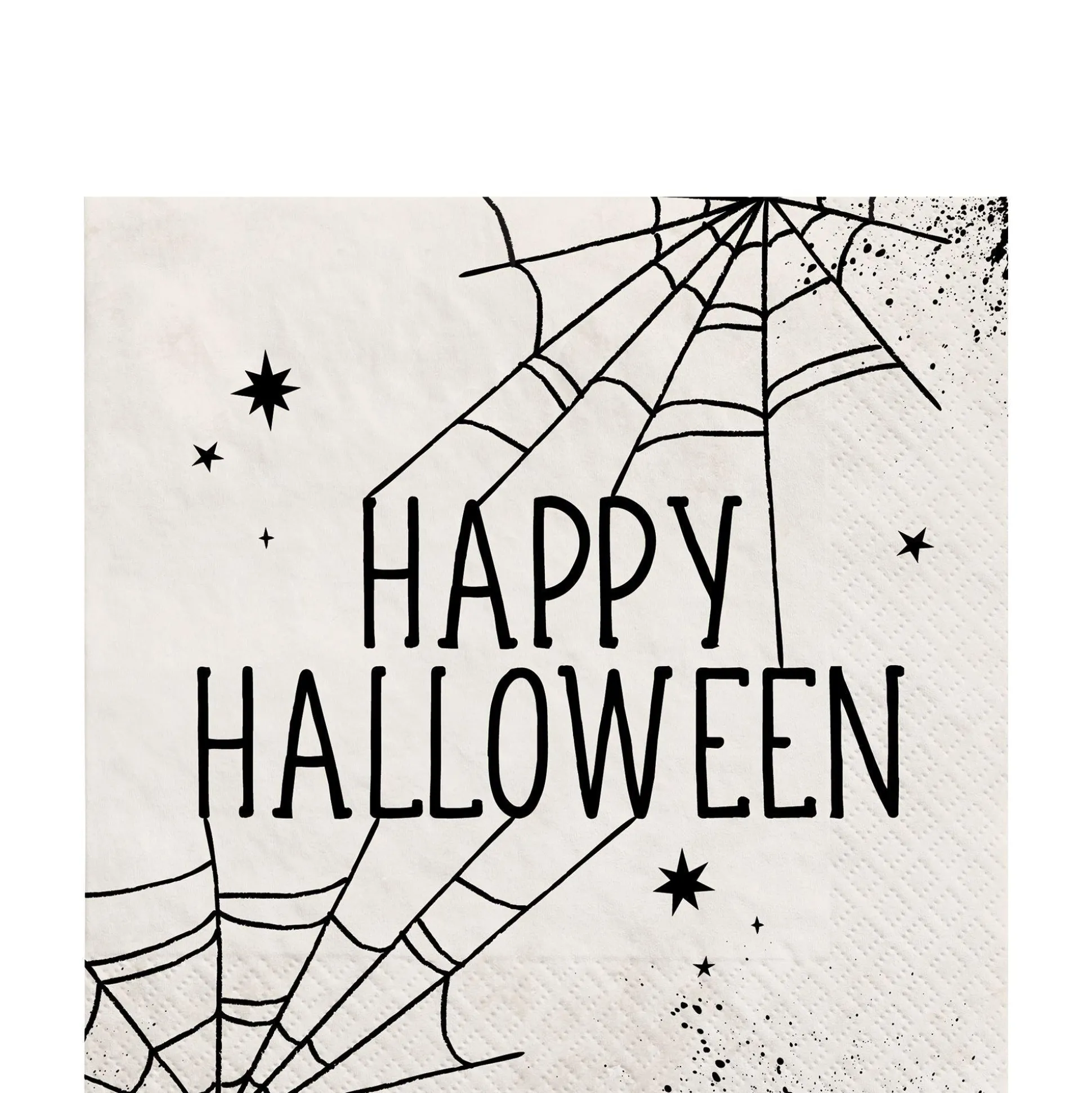 Give Your Halloween Celebration Classic Style With Spiderweb Napkins! The Two-Ply Paper Napkins Are White With Spiderwebs, Stars, And A Happy Halloween Headline.