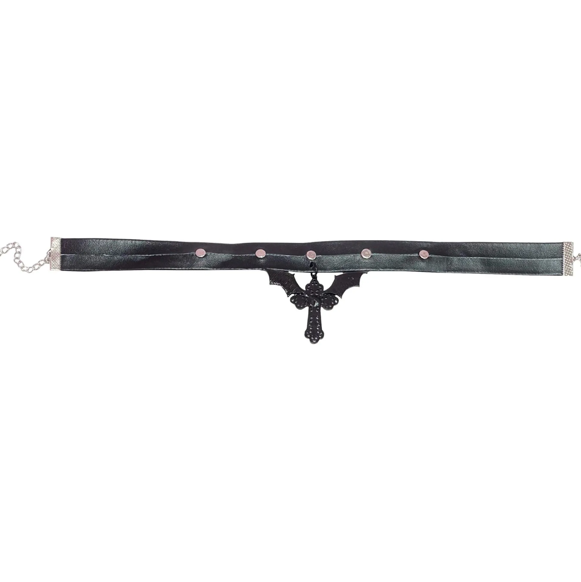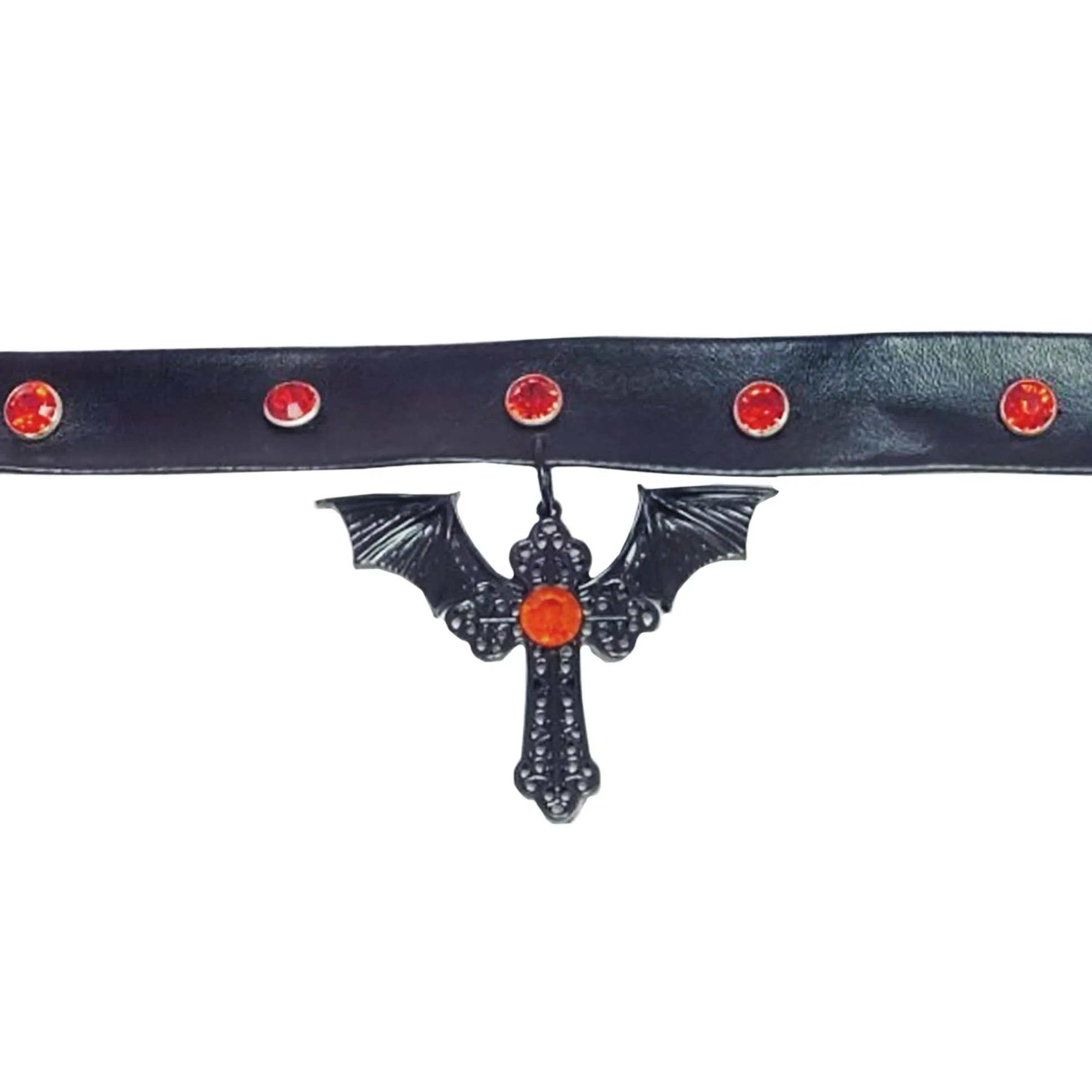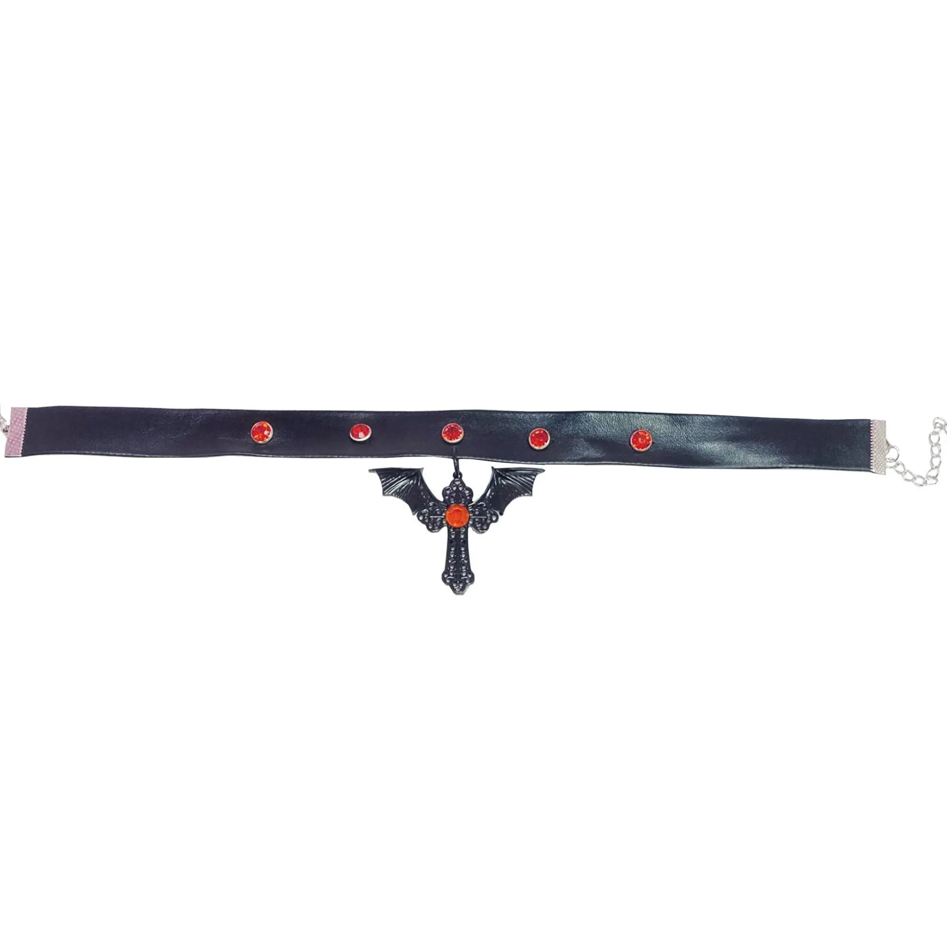 Complete Your Gothic Vampire Costume With The Vampire Cross Choker! This Choker Features A Studded Black Leather Band With A Vampire Cross Charm — A Black Maronite Cross With Bat Wings.