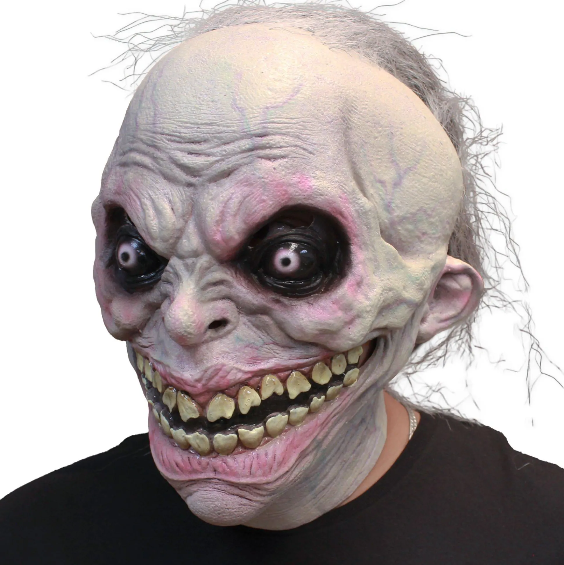 This Latex Mask Is Something Out Of Your Worst Nightmare. The Distorted, Elderly Face Features Sunken Eyes, A Creepy Ear-To-Ear Grin, And Stringy White Hair. The Mask’s Realistic Textures And Menacing Expression Are A Sure Way To Add Spook To Your Horror Costume.