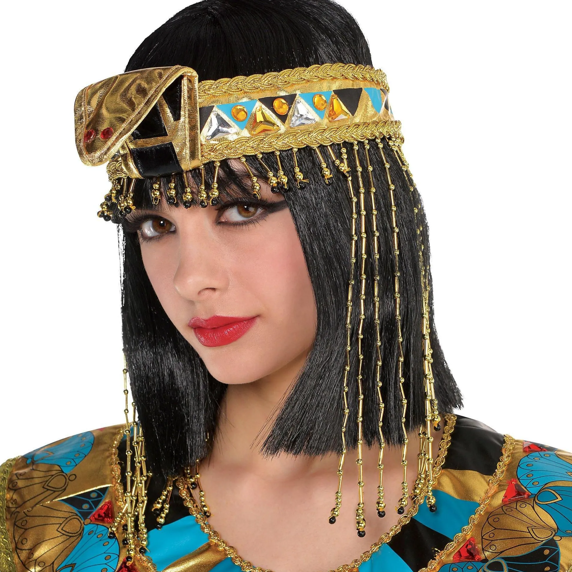 Walk Into The Costume Party Like An Egyptian Wearing An Egyptian Headpiece For Women! This Headpiece Is Made Of Gold Fabric Adorn With Gold Strands And Colorful Plastic Details. Wear A Headpiece With Other Gold Or Colorful Clothing (Sold Separately) To Create Your Diy Cleopatra Costume. Everyone Will Be Bowing Down When They See You Walking Into The Party Wearing An Egyptian Headpiece! Dress And Arm Cuffs Not Included.