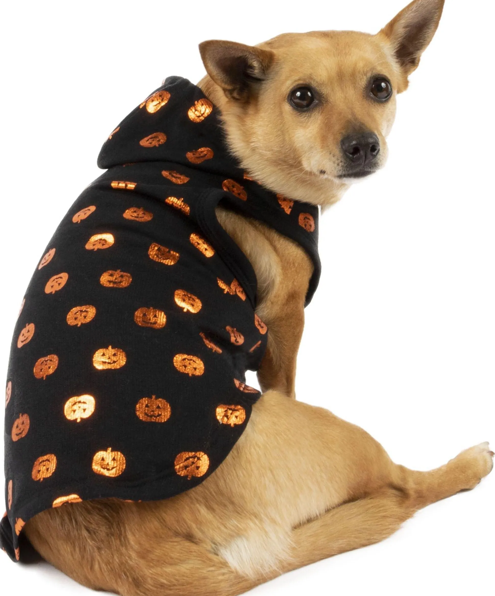 Dress Your Doggy In The Halloween Spirit With The Glowing Pumpkins Hoodie! This Festive Hoodie Is Black With Shiny Orange Jack-O’-Lanterns All Over.