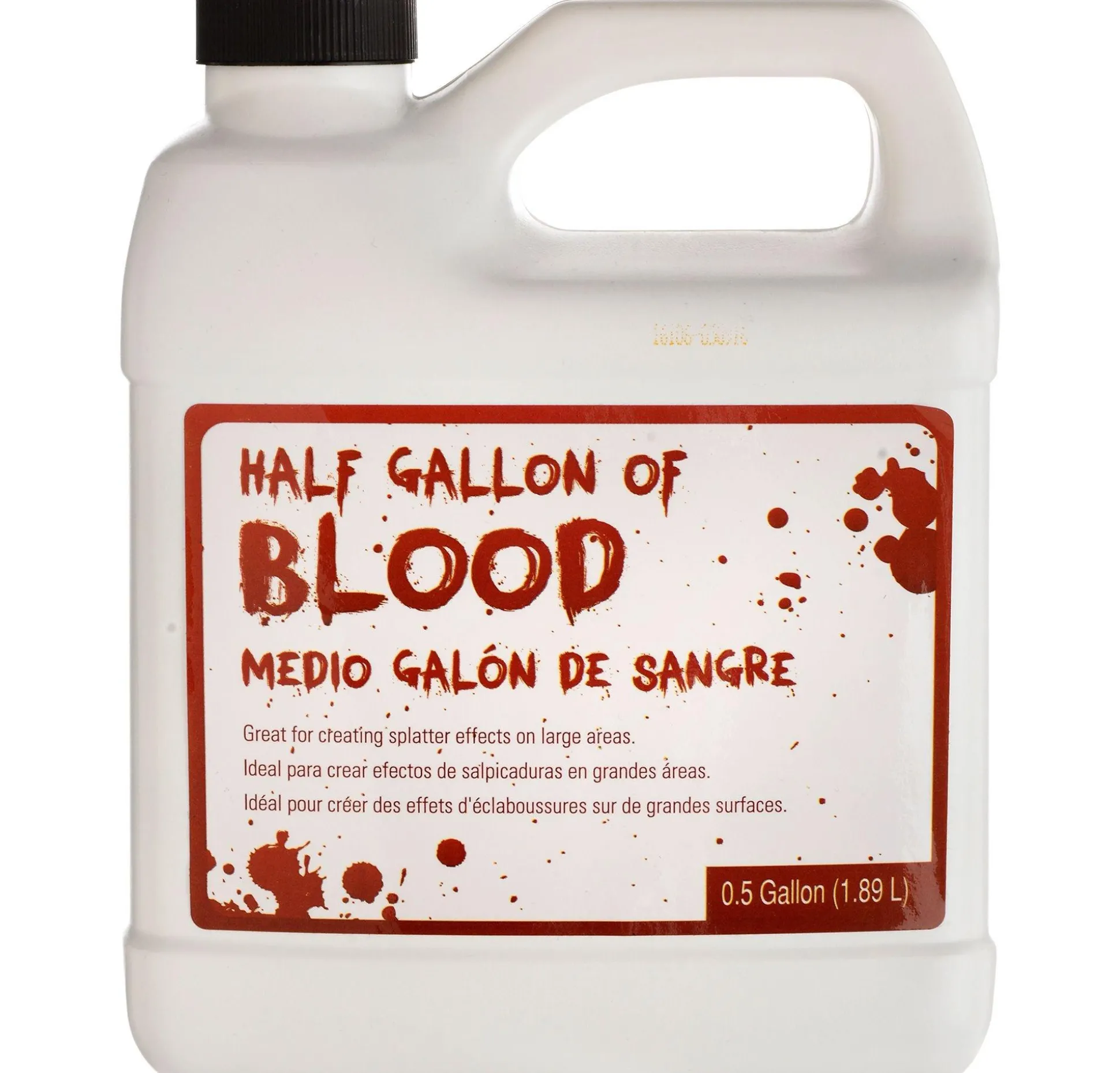 Make Your Halloween Party A Bloody Gore Fest To Remember With A Half Gallon Of Fake Blood! This Thick Fake Blood Is A Rich Blood Color That Looks And Flows Like The Real Thing. It’s Perfect For Creating Special Effects Such As Oozing Bandages, Bloody Footprints, And More. Just Be Careful About Where You Place It, Because The Staining Power May Get You Caught Red-Handed.