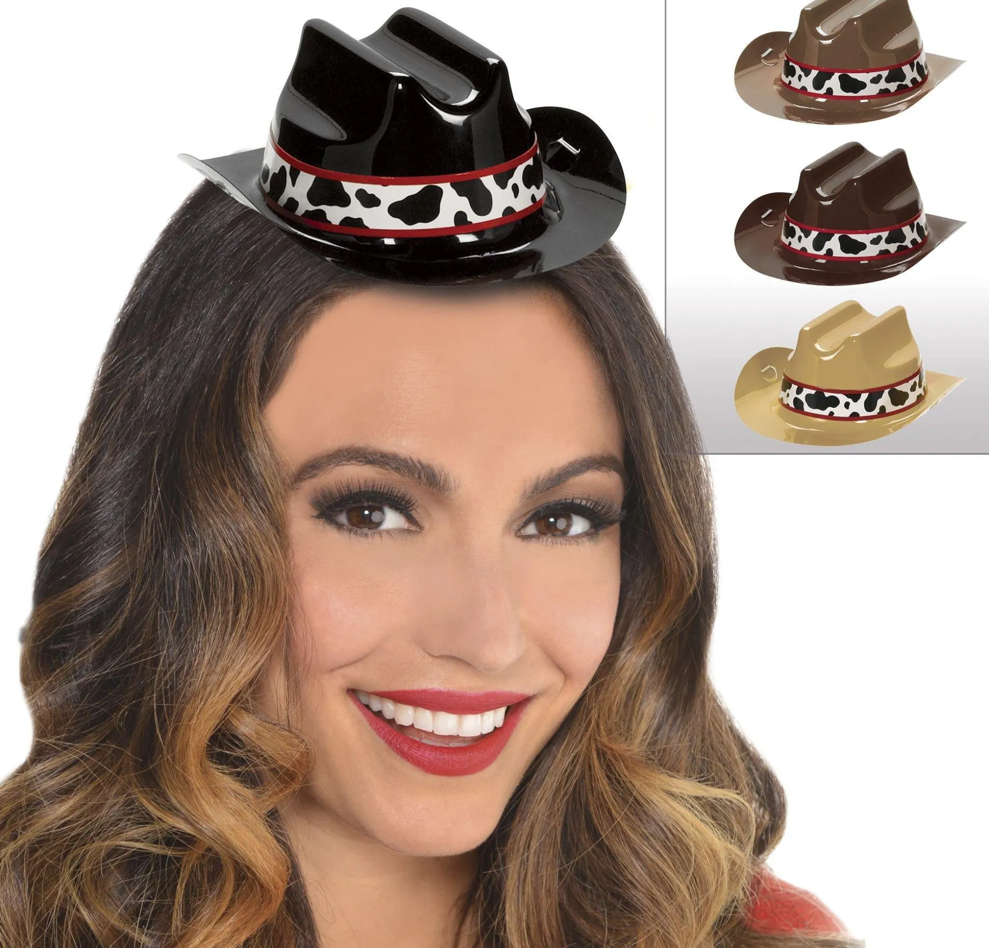 Yee To The Haw! These Western Mini Cowboy Hats Are Made Of Plastic And Feature A Cow Print Hatband. These Mini Hats Come In Four Varying Shades Of Brown For A Classic Western Look. Elastic Straps Hold The Mini Hats In Place — Even During A Bucking Bronco Ride! Wear Them With Costumes Or Hand Them Out To Guests At Your Western-Themed Party.